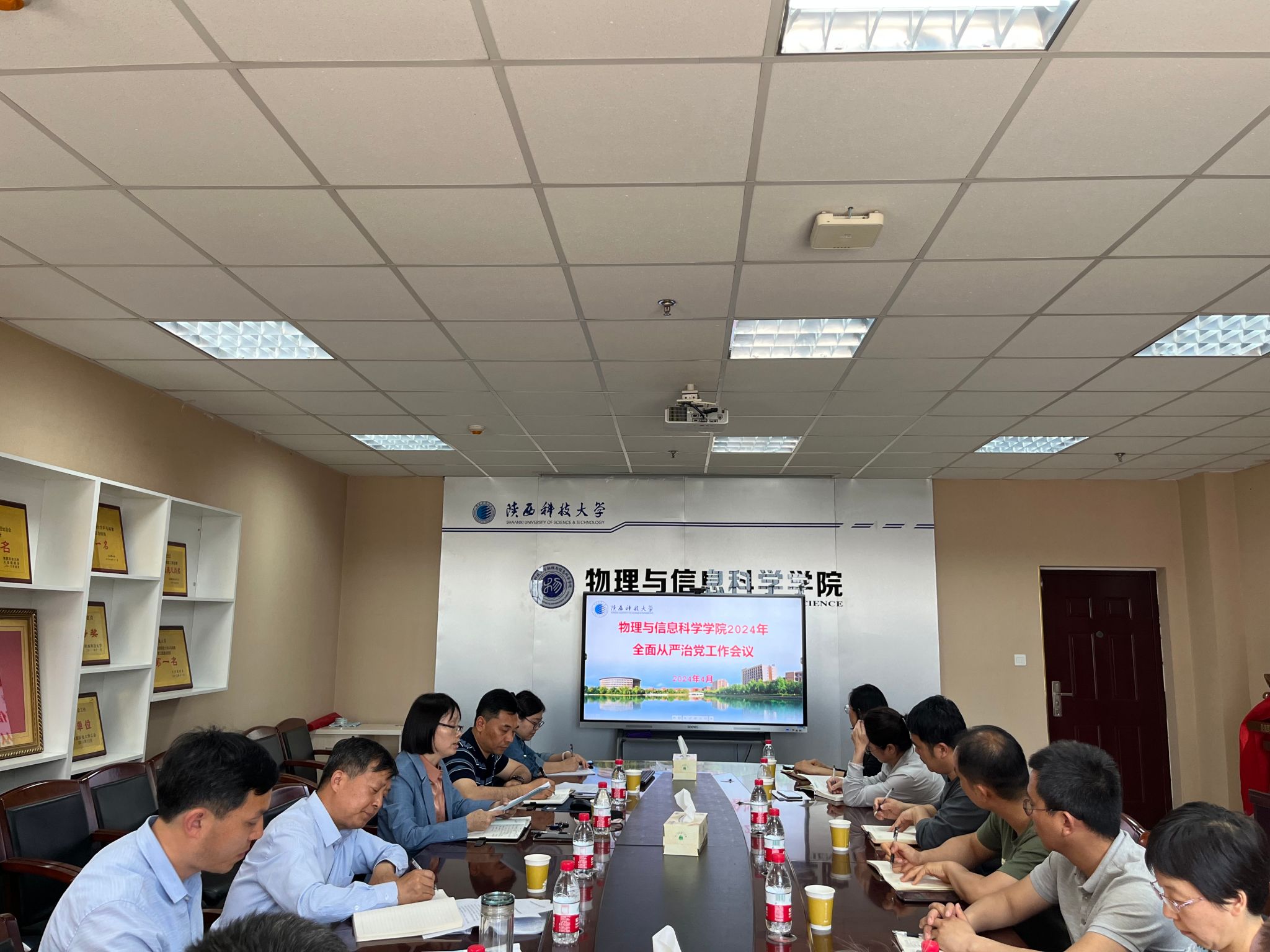 4月26日上午,物理與信息科學學院召開2024年全面從嚴治黨工作會議。學院領導班子成員、黨委委員、紀委委員、各系(所、中心、室)主任、全體黨支部書記參加會議。會議由學院黨委書記陳源梅主持。