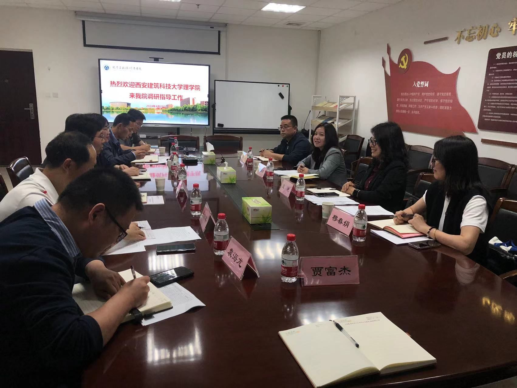 4月29日下午,西安建筑科技大學(xué)理學(xué)院教學(xué)副院長宮春梅、大數(shù)據(jù)系主任劉勇、數(shù)學(xué)系主任王艷、教學(xué)秘書穆春娟一行來到數(shù)學(xué)學(xué)院進行調(diào)研交流,數(shù)學(xué)學(xué)院黨委書記郭改慧、教學(xué)副院長白云霄及各系主任、教學(xué)秘書參加了交流活動。