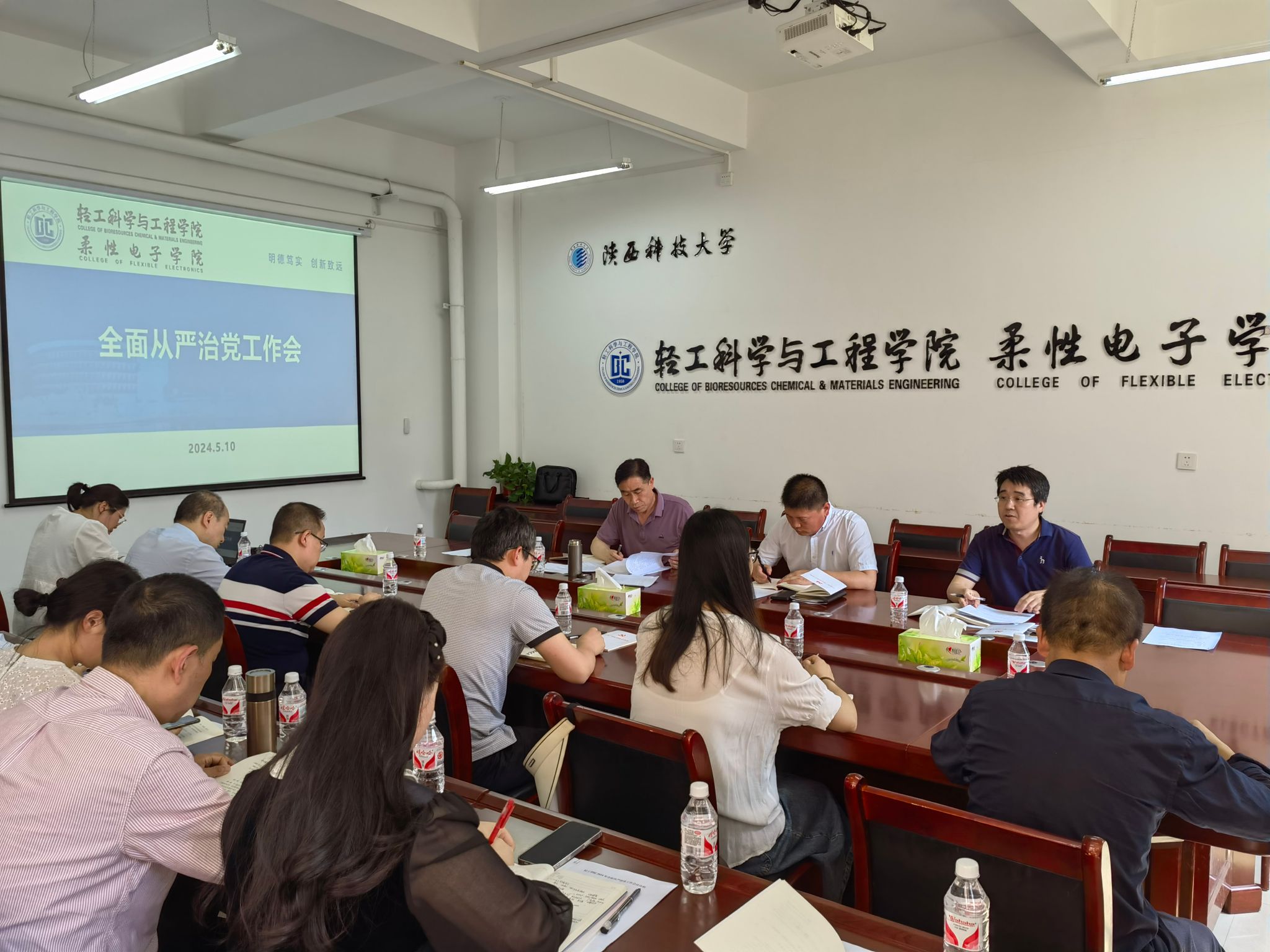 5月10日下午,輕工科學與工程學院(柔性電子學院)黨委召開全面從嚴治黨工作會議,學院黨政班子成員、黨委委員、紀委委員、全體黨支部書記參加會議。會議由學院黨委書記李新平主持。