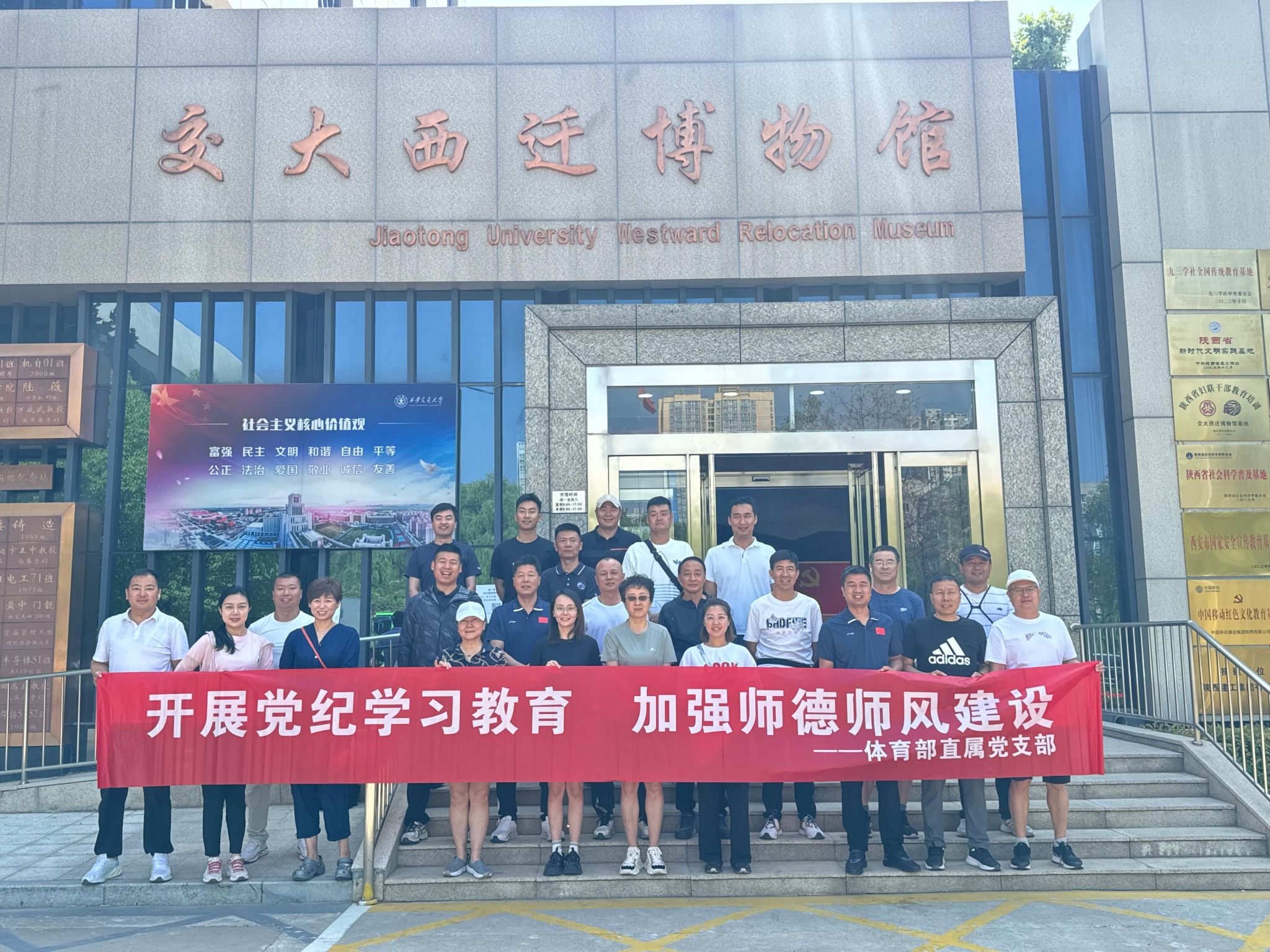 賡續(xù)西遷精神,寓紀(jì)于師培育優(yōu)良師德師風(fēng)。堅(jiān)持抓黨紀(jì)條例學(xué)習(xí)與抓教師隊(duì)伍建設(shè)、強(qiáng)紀(jì)律意識(shí)與強(qiáng)師德師風(fēng)統(tǒng)籌推進(jìn),寓紀(jì)于師,切實(shí)把黨紀(jì)學(xué)習(xí)教育成果轉(zhuǎn)化為體育教師隊(duì)伍建設(shè)成效。近日,體育部直屬黨支部組織全體教師赴西安交通大學(xué)西遷博物館舉行了“開展黨紀(jì)學(xué)習(xí)教育,加強(qiáng)師德師風(fēng)建設(shè)”實(shí)踐研學(xué)。通過實(shí)踐參觀,進(jìn)一步激發(fā)了體育教師,作為西遷高校教師群體的自豪感和使命感。大家表示要牢記習(xí)近平總書記諄諄教誨,準(zhǔn)確把握“西遷精神”的核心要義和精髓內(nèi)涵,大力弘揚(yáng)和傳承我校“三創(chuàng)兩遷”大學(xué)精神,努力工作、擔(dān)當(dāng)作為,為促進(jìn)學(xué)校體育事業(yè)發(fā)展,服務(wù)學(xué)生健康成長(zhǎng)貢獻(xiàn)體育人的力量。