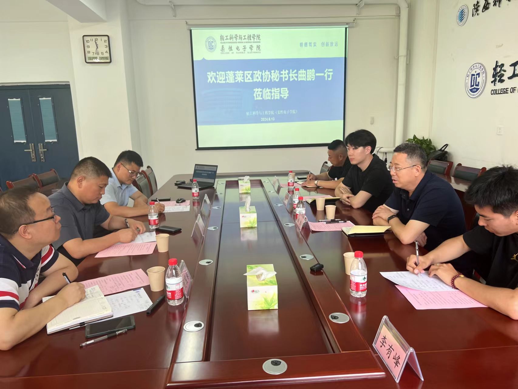 6月13日,煙臺(tái)市蓬萊區(qū)政協(xié)秘書(shū)長(zhǎng)曲鵬、煙臺(tái)市蓬萊區(qū)融媒體中心主任李有峰、煙臺(tái)好前程文具有限公司總經(jīng)理李易霖、煙臺(tái)凈仁醫(yī)藥有限公司董事長(zhǎng)王建東等一行到輕工科學(xué)與工程學(xué)院走訪調(diào)研,洽談校地企合作事宜。輕工學(xué)院院長(zhǎng)呂斌出席座談會(huì)并致歡迎辭,輕工學(xué)院副院長(zhǎng)劉國(guó)棟主持座談會(huì)。