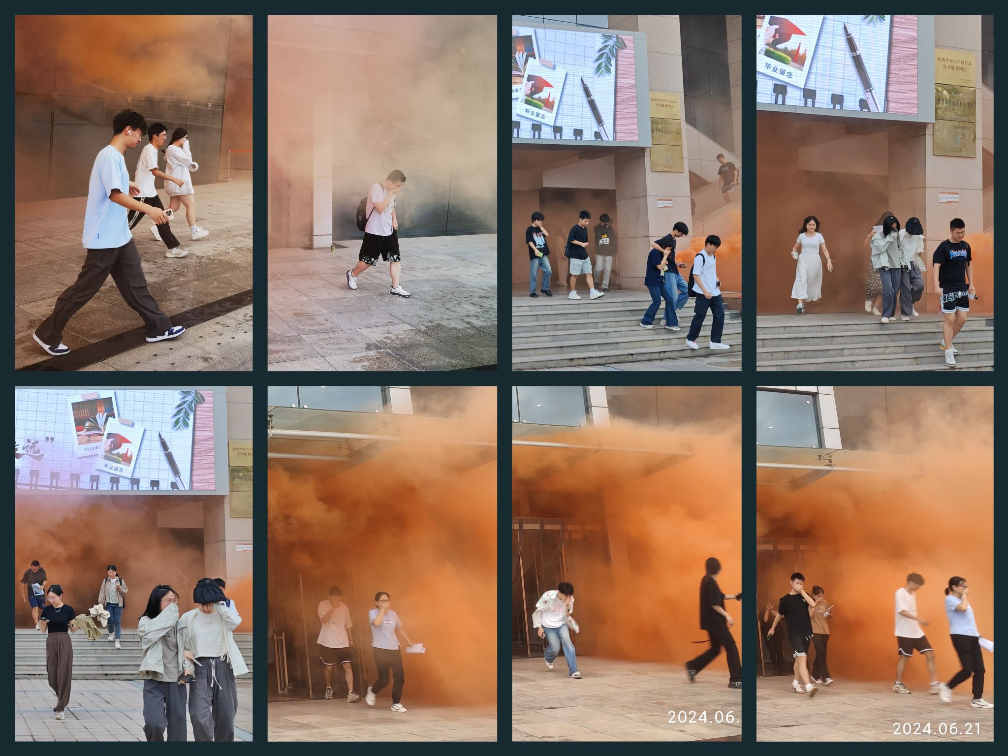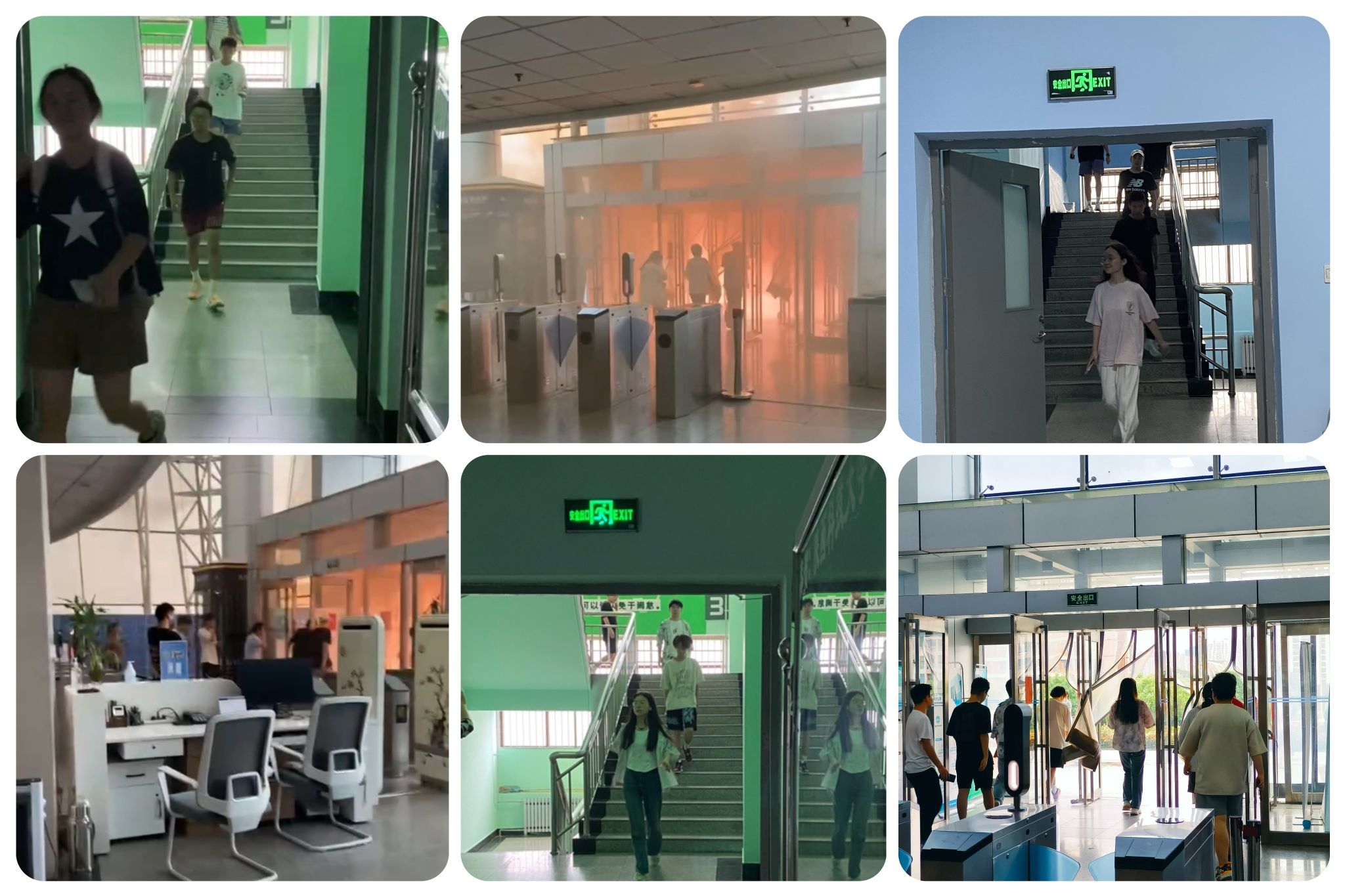 演練當(dāng)天,工作人員按照演練方案,提前到達(dá)負(fù)責(zé)疏散位置,并通過廣播系統(tǒng)播放演練疏散注意事項(xiàng)。9點(diǎn)30分演練正式開始,保衛(wèi)處設(shè)置模擬火源,火警報(bào)警系統(tǒng)立即啟動(dòng),館內(nèi)師生在工作人員的指引下,從消防安全通道迅速、有序地撤離到館外安全區(qū)域。