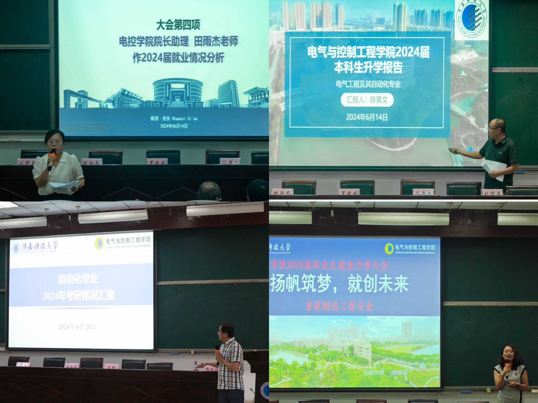 為全面落實學(xué)校就業(yè)工作部署,提前謀劃、扎實做好2025屆學(xué)生就業(yè)指導(dǎo)與服務(wù)工作,電氣與控制工程學(xué)院于6月14日、6月21日在三號教學(xué)樓101報告廳分專業(yè)舉行2025屆就業(yè)升學(xué)系列動員大會。校學(xué)生就業(yè)指導(dǎo)中心就業(yè)創(chuàng)業(yè)指導(dǎo)部主任羅曉婷、電控學(xué)院院長助理田雨杰、電氣工程系主任陳景文、自動化系主任王學(xué)恩、智能制造系主任曹曉倩,以及系部骨干教師代表出席會議,2024屆電氣優(yōu)秀學(xué)生代表及2025屆全體學(xué)生參會,會議由輔導(dǎo)員鄭琪琪主持。