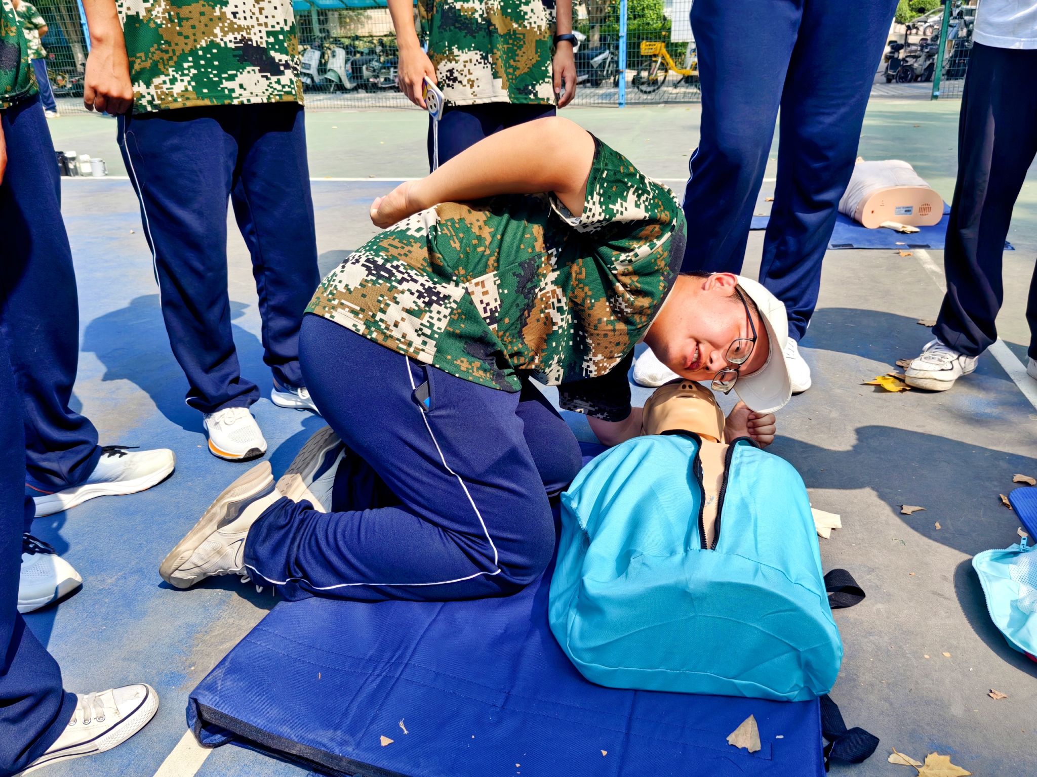 此次培訓(xùn)通過(guò)理論學(xué)習(xí)、交流互動(dòng)、現(xiàn)場(chǎng)示范、實(shí)踐操作等形式,專題講授了心肺復(fù)蘇術(shù)(CPR)和自動(dòng)體外除顫器(AED)的使用,培訓(xùn)講師利用人體模型進(jìn)行現(xiàn)場(chǎng)示范,對(duì)每位參訓(xùn)學(xué)員進(jìn)行“手把手”專業(yè)指導(dǎo),每場(chǎng)就使用120具人體模型讓學(xué)員逐一熟悉在應(yīng)急救護(hù)中調(diào)整體位、打開(kāi)氣道、人工呼吸、胸外心臟按壓等操作要領(lǐng)和注意事項(xiàng),確保救護(hù)動(dòng)作規(guī)范準(zhǔn)確。全體學(xué)員認(rèn)真聽(tīng)講、反復(fù)練習(xí)、掌握要領(lǐng),通過(guò)線上理論知識(shí)和線下實(shí)踐操作考核,考取了大學(xué)第一個(gè)證書(shū)——紅十字救護(hù)員證書(shū)。
