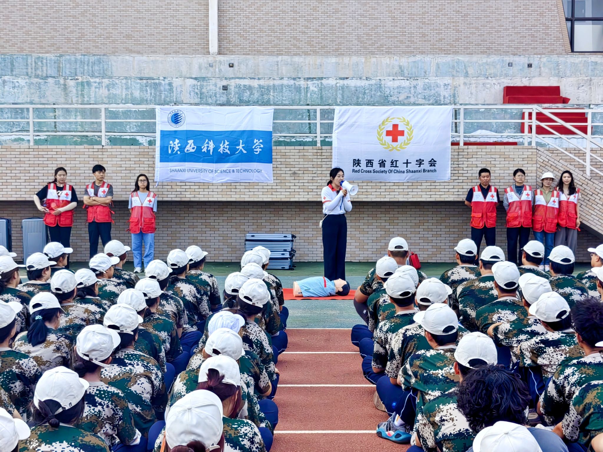 為提高學(xué)生在面對(duì)突發(fā)事件和意外傷害時(shí)的應(yīng)急意識(shí)和自救互救能力,助力平安校園、健康中國(guó)建設(shè)。9月7日至11日,在陜西科技大學(xué)2024級(jí)新生軍訓(xùn)期間,25名陜西省紅十字會(huì)應(yīng)急救護(hù)師資(9人為陜西科技大學(xué)教師)先后到校開(kāi)展為期5天16場(chǎng)次64學(xué)時(shí)的應(yīng)急救護(hù)培訓(xùn)活動(dòng),來(lái)自14個(gè)學(xué)院的4699名本科新生參加心肺復(fù)蘇(CPR+AED)培訓(xùn),考取了紅十字救護(hù)員證書(shū)。