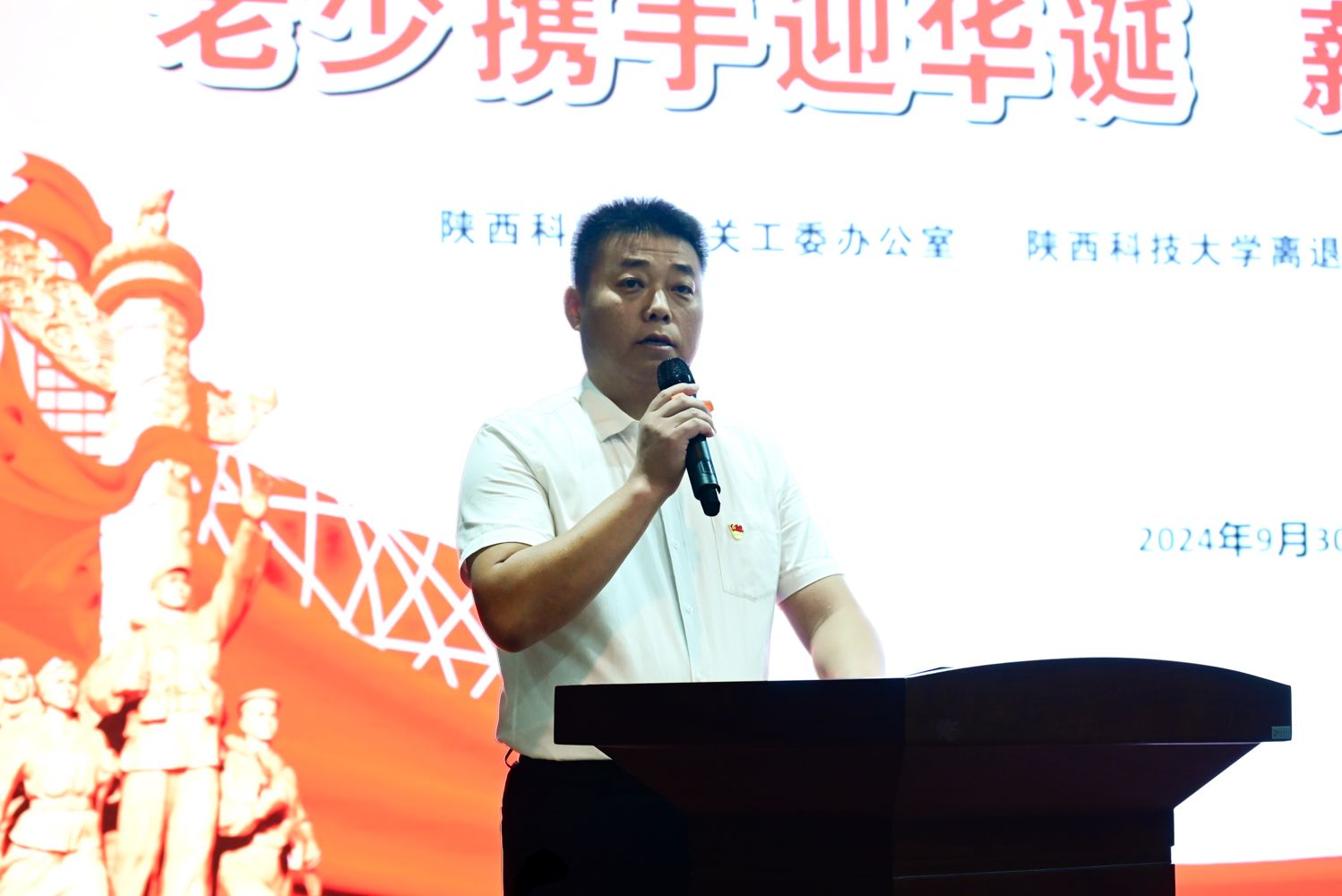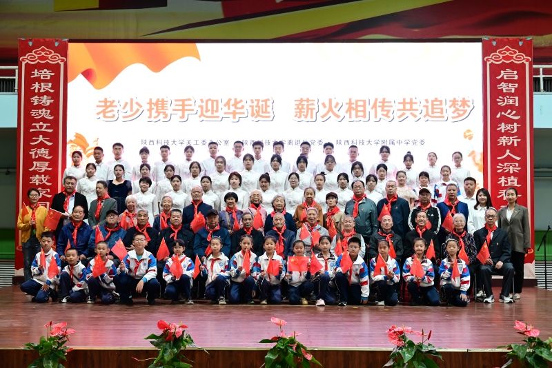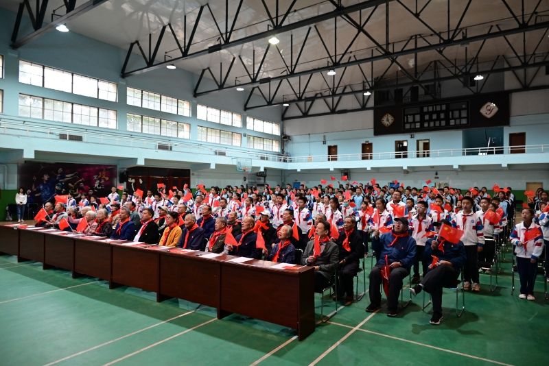 9月30日清晨,陜西科技大學(xué)附屬中學(xué)文體館內(nèi),師生們齊聚一堂,學(xué)校關(guān)工委辦公室、離退處黨委與附屬中學(xué)黨委聯(lián)合開展“老少攜手迎華誕 薪火相傳共追夢(mèng)”主題升旗活動(dòng)。附屬中學(xué)黨委書記、校長王琪,離退處黨委副書記、副處長高翔,處長助理苗曉潔出席活動(dòng),20余名離退休黨員代表與200余名青少年學(xué)子參與活動(dòng)?;顒?dòng)由附屬中學(xué)校長助理成宏亮主持。