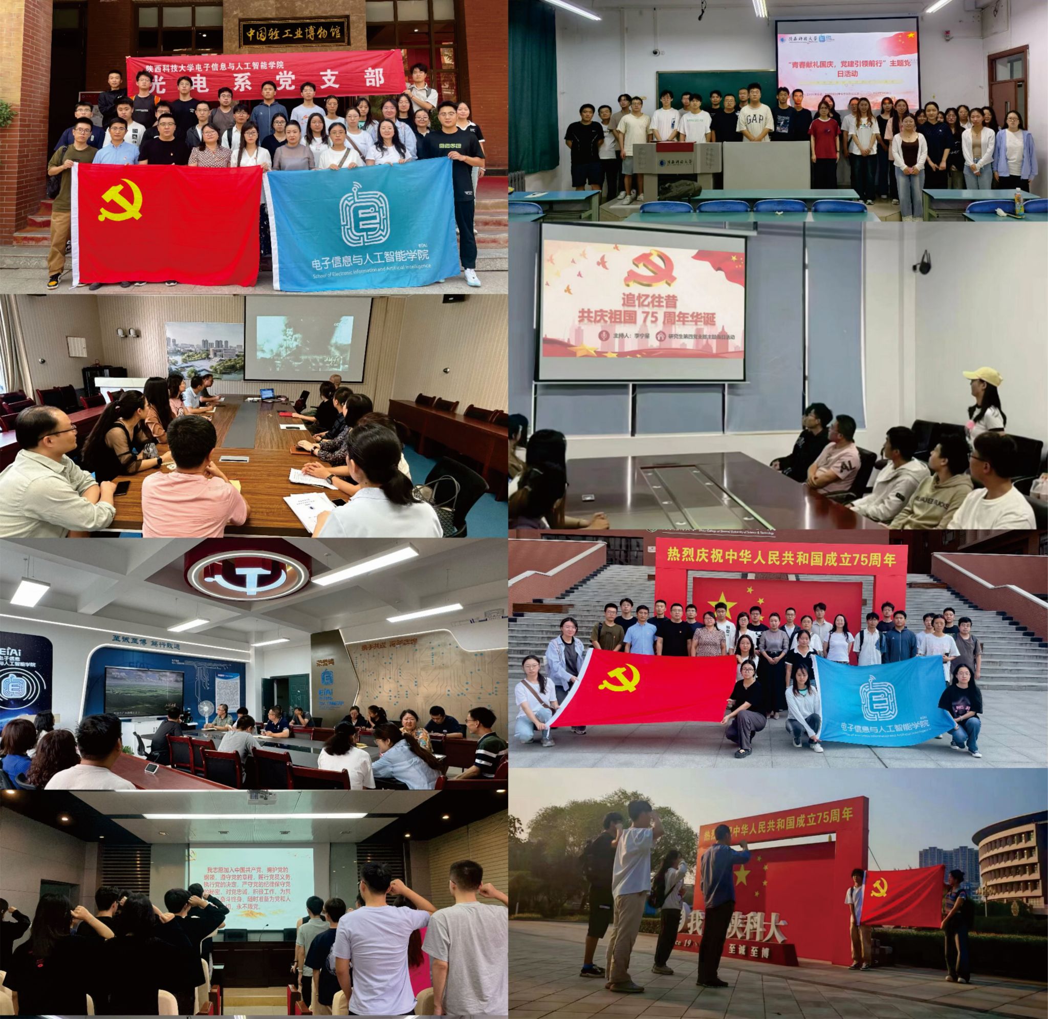 為慶祝中華人民共和國建國75周年,弘揚(yáng)愛國主義精神,電子信息與人工智能學(xué)院黨委組織黨、團(tuán)、班開展系列活動(dòng),激勵(lì)青年學(xué)子勇?lián)鷷r(shí)代使命、重溫紅色記憶、汲取奮進(jìn)力量。