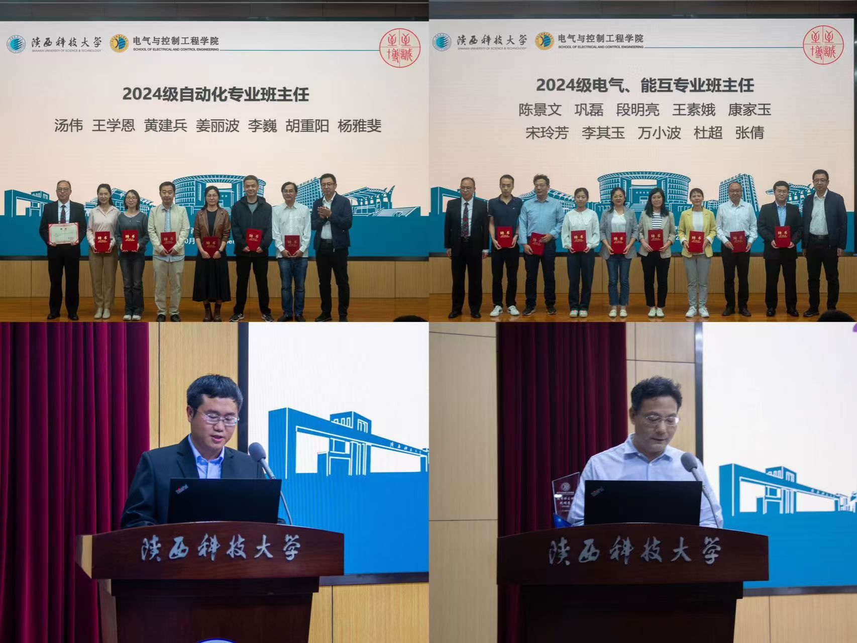 為更好地發(fā)揮學院專業(yè)教師在學生成長成才中的作用,會議第一階段表彰2023級新生班主任并聘任2024級新生專業(yè)班主任。會上,院黨委書記喬明哲、院長湯偉為2023級新生班主任姜蘇英、丑幸幸和段明亮頒發(fā)“優(yōu)秀班主任”獎杯,并為2024級新生專業(yè)班主任頒發(fā)聘書。