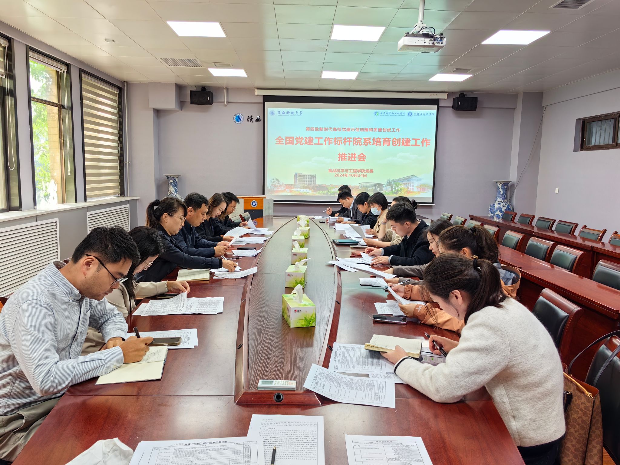 10月24日下午,食品學(xué)院黨委召開(kāi)全國(guó)黨建工作標(biāo)桿院系培育創(chuàng)建工作推進(jìn)會(huì)。學(xué)院黨委委員、全體黨支部書(shū)記參加會(huì)議。會(huì)議由黨委書(shū)記張凱凱主持。