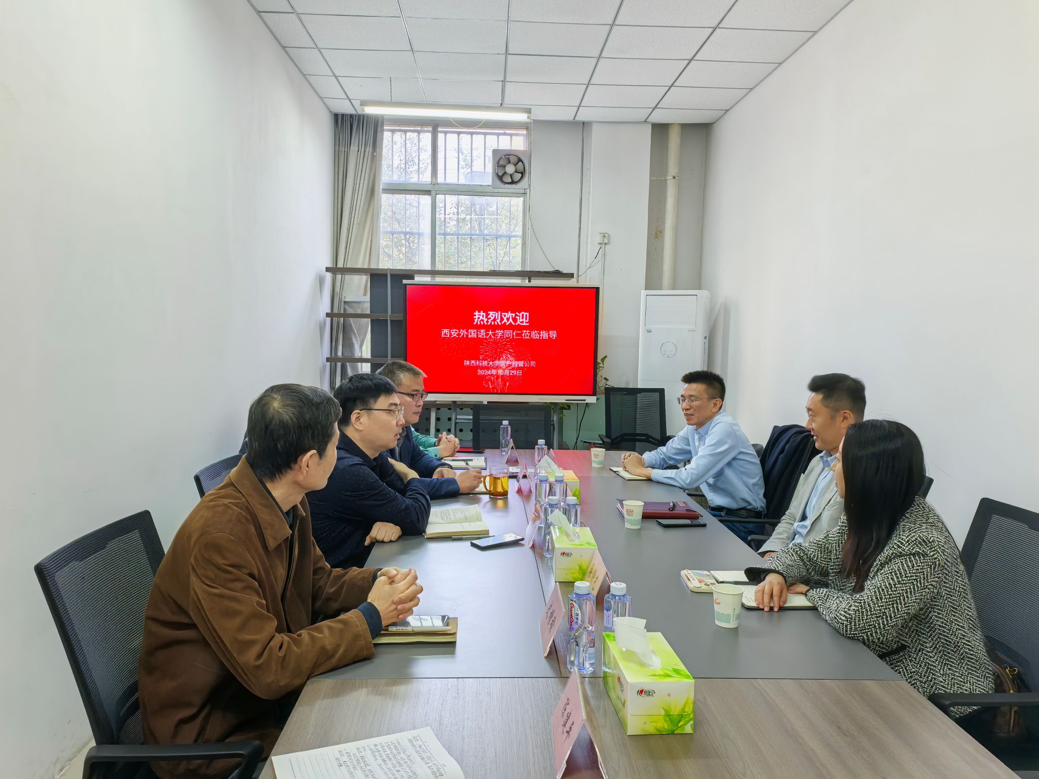 10月29日上午,西安外國(guó)語大學(xué)教育產(chǎn)業(yè)發(fā)展中心主任王穎一行3人來我校資產(chǎn)經(jīng)營(yíng)公司開展調(diào)研交流活動(dòng)。資產(chǎn)經(jīng)營(yíng)公司總經(jīng)理李紅坦、副總經(jīng)理王先鋒及相關(guān)工作人員參加了座談會(huì)。會(huì)議由李紅坦主持。