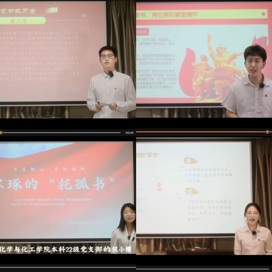 利用新生入學(xué)教育、開學(xué)第一課、積極分子黨課培訓(xùn)等,分層分類開展黨情國(guó)情校情教育。推出《榜樣的力量》、《誦讀紅色家書,傳承紅色基因》等品牌活動(dòng),通過緬懷革命先烈的豐功偉績(jī),赤誠(chéng)報(bào)國(guó)的奮斗精神,激發(fā)學(xué)生的愛國(guó)情、奮斗志,引導(dǎo)學(xué)生樹立遠(yuǎn)大理想,發(fā)揚(yáng)拼搏精神,激發(fā)學(xué)習(xí)動(dòng)力。邀請(qǐng)校友與學(xué)生面對(duì)面交流,用行業(yè)前沿發(fā)展趨勢(shì)堅(jiān)定學(xué)生專業(yè)自信和學(xué)習(xí)目標(biāo)。開展保研學(xué)生學(xué)習(xí)經(jīng)驗(yàn)交流分享會(huì),用朋輩榜樣成長(zhǎng)事跡激勵(lì)低年級(jí)學(xué)生。