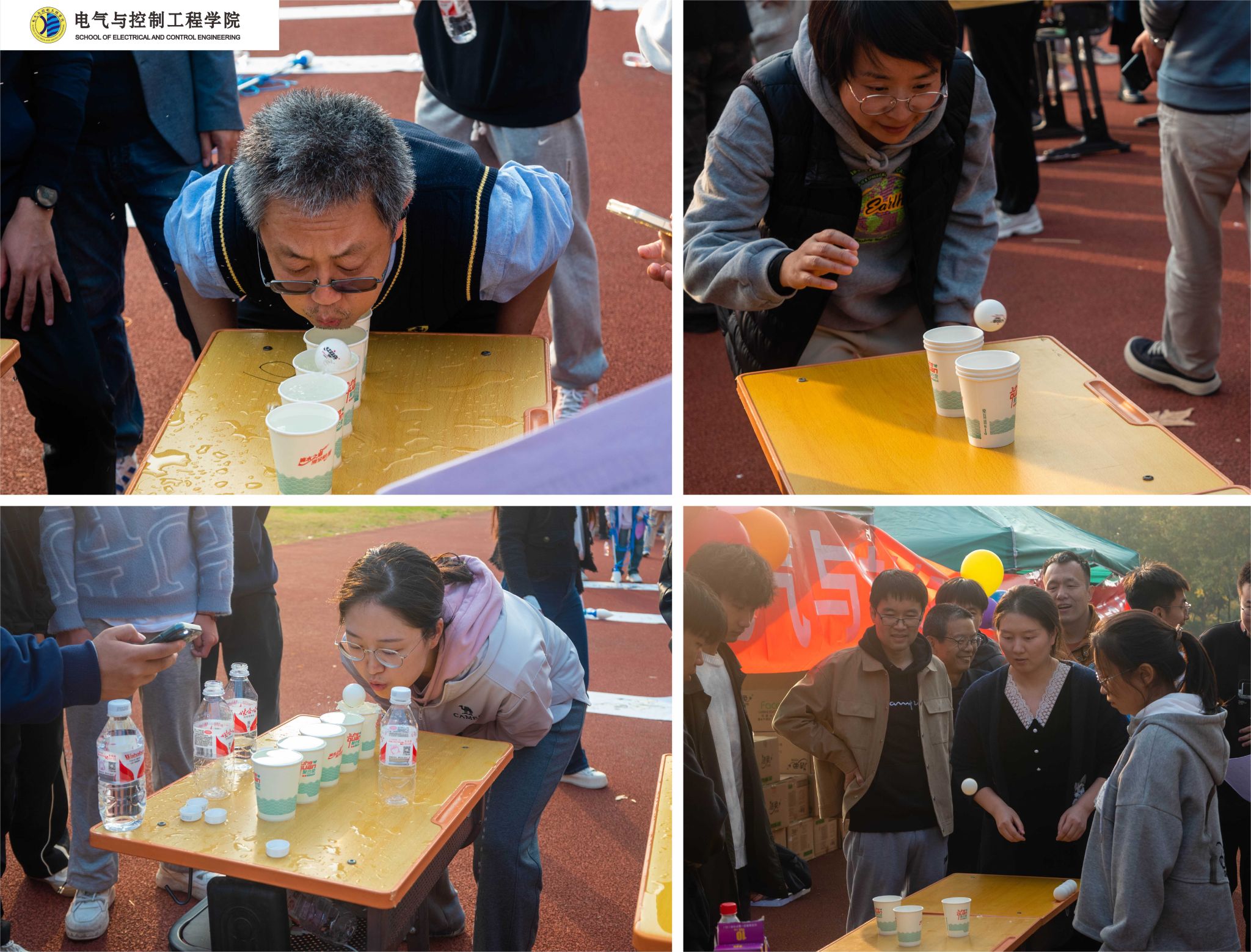 本次趣味運(yùn)動(dòng)會(huì)分為團(tuán)體賽和個(gè)人賽兩大部分。熱身完畢后,師生們迅速投入到相應(yīng)項(xiàng)目的準(zhǔn)備活動(dòng)中,本次趣味運(yùn)動(dòng)會(huì)的團(tuán)體賽由“團(tuán)體持球接力跑”、“神筆馬良”、“師生兩人三足接力障礙跑”三個(gè)項(xiàng)目組成,各隊(duì)隊(duì)員緊密協(xié)作,操場(chǎng)上歡笑聲與加油聲此起彼伏,各支參賽隊(duì)伍引得觀眾陣陣喝彩,充分展現(xiàn)了電控學(xué)院廣大師生團(tuán)結(jié)協(xié)作、勇于拼搏的精神風(fēng)貌。個(gè)人賽由“鬧鐘炸彈”、“吹球過河”、“小球進(jìn)杯”三個(gè)項(xiàng)目組成,各位選手神情專注,不僅展現(xiàn)了強(qiáng)勁的綜合素質(zhì),更展現(xiàn)了他們不斷超越自我、奮發(fā)向上的運(yùn)動(dòng)精神。