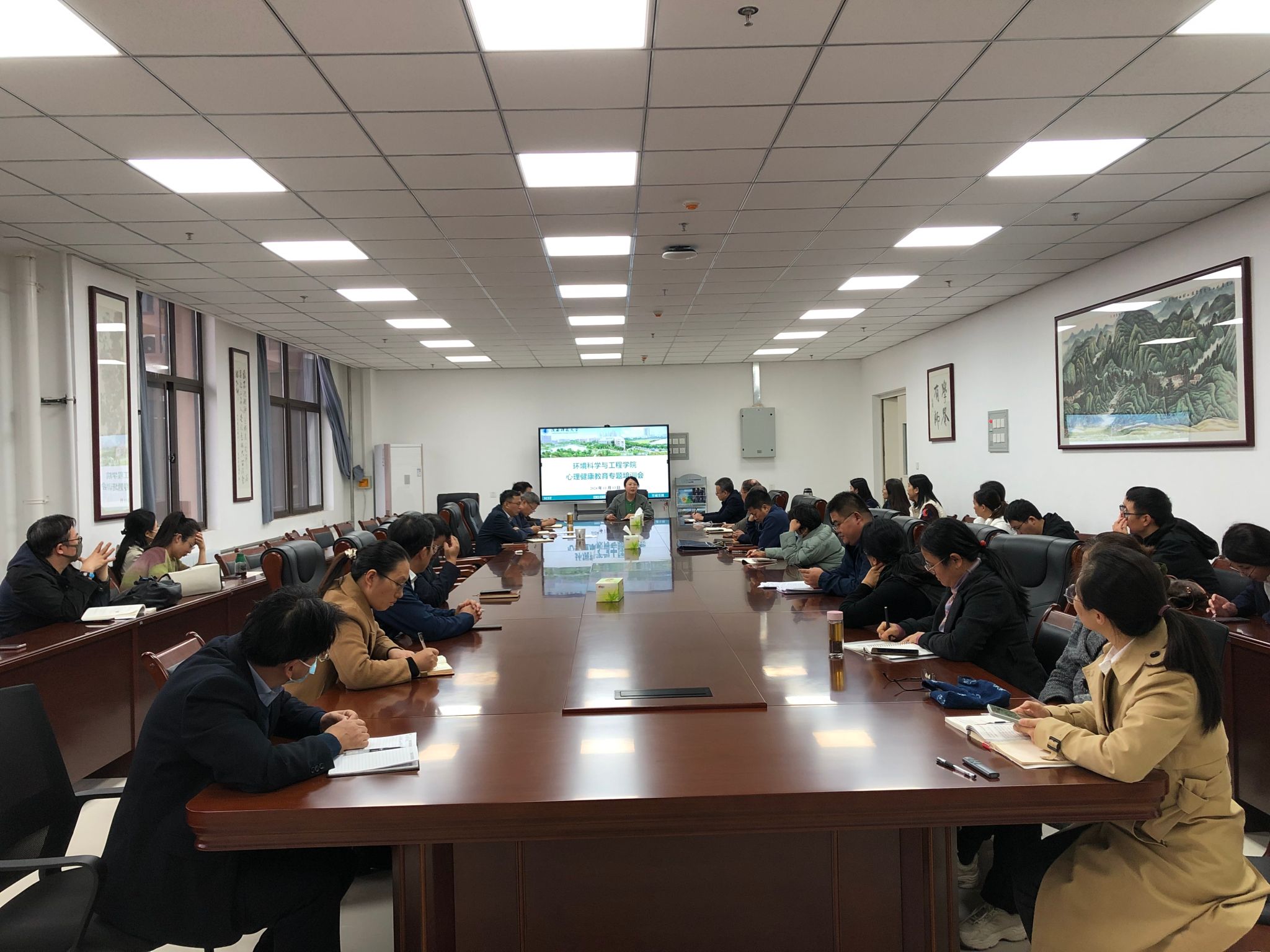 11月13日,環(huán)境科學(xué)與工程學(xué)院(碳中和科學(xué)與技術(shù)學(xué)院)舉辦心理健康教育專題培訓(xùn)會(huì),邀請(qǐng)校心理健康中心、陜西高校學(xué)生心理健康課程教學(xué)標(biāo)兵權(quán)海燕作專題培訓(xùn),環(huán)境學(xué)院班子成員、全體教師參加培訓(xùn)。學(xué)院黨委書記李廣明主持會(huì)議。