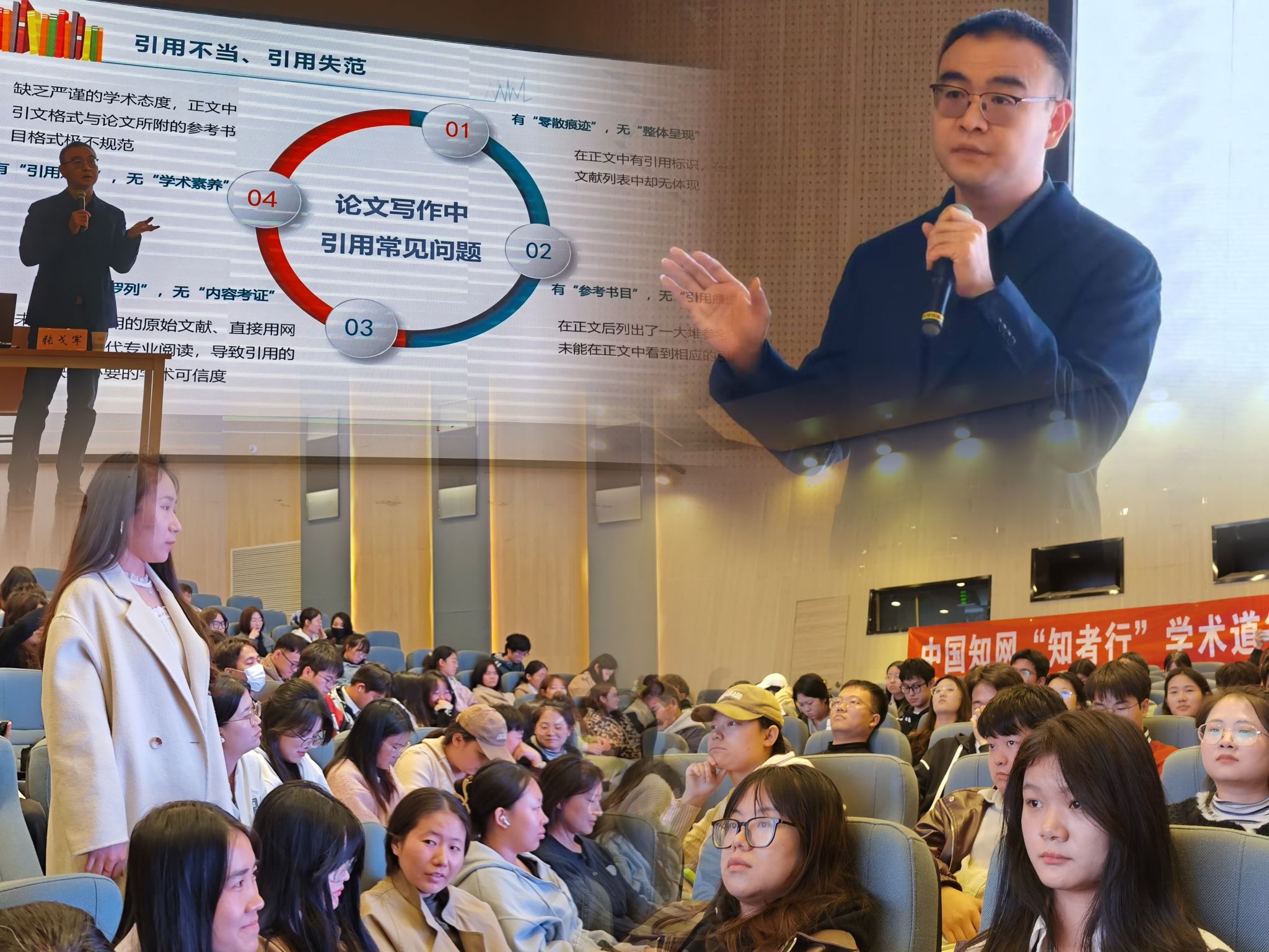 張戈軍圍繞“秉承科研誠(chéng)信理念,助力學(xué)術(shù)論文規(guī)范”主題,從了解學(xué)術(shù)不端行為、論文寫(xiě)作中常見(jiàn)的不端行為、學(xué)位論文寫(xiě)作規(guī)范及學(xué)術(shù)資源獲取與利用四個(gè)方面詳細(xì)剖析了研究生學(xué)術(shù)論文撰寫(xiě)過(guò)程中的行為規(guī)范。報(bào)告中,張戈軍結(jié)合豐富的真實(shí)案例詳細(xì)展示了研究生論文創(chuàng)作過(guò)程中可能存在的問(wèn)題和需要注意的風(fēng)險(xiǎn)點(diǎn),通過(guò)各種正反面實(shí)例和實(shí)踐操作技巧,幫忙研究生學(xué)習(xí)學(xué)術(shù)道德規(guī)范。同時(shí),詳細(xì)解讀了學(xué)位論文查重系統(tǒng)檢測(cè)指標(biāo)、論文查重報(bào)告示范單、檢學(xué)術(shù)資源的獲取方式等,指導(dǎo)研究生精準(zhǔn)掌握論文檢索技巧、科學(xué)引用他人研究成果。報(bào)告會(huì)現(xiàn)場(chǎng)氣氛熱烈,與會(huì)研究生們認(rèn)真聆聽(tīng)、積極思考?;?dòng)提問(wèn)環(huán)節(jié),同學(xué)們紛紛就學(xué)術(shù)論文發(fā)表、期刊選擇、學(xué)術(shù)誠(chéng)信對(duì)職業(yè)發(fā)展影響等問(wèn)題與張戈軍進(jìn)行了深入的探討交流。