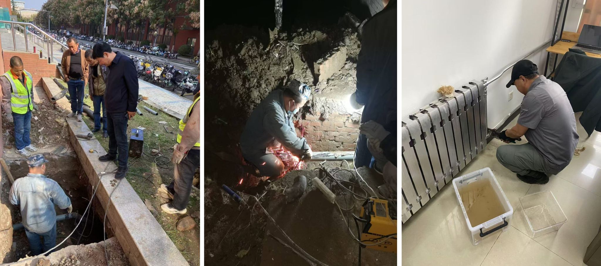提前打壓試水,避免跑冒滴漏。“試水”是供熱前對供熱設(shè)施進行調(diào)試的重要環(huán)節(jié)。后勤集團提前一個月對管網(wǎng)進行注水,發(fā)布試水通知。因供熱管網(wǎng)直埋深處、管網(wǎng)系統(tǒng)龐大、管道覆蓋于硬化路面之下等諸多因素影響,給排查并解決跑冒滴漏問題帶來極大挑戰(zhàn)。面對困難,集團制定了“動力中心牽頭、工程中心跟進、相關(guān)科室配合”的工作方式,遵循“隨排查、隨搶修”原則,對全校管線進行了全面細(xì)致的排查。試水期間,成功解決跑冒滴漏300余處,緊急修復(fù)教學(xué)樓、學(xué)生公寓、實訓(xùn)樓等大漏點20余處。供暖前夕,所有搶修工作全部完成。