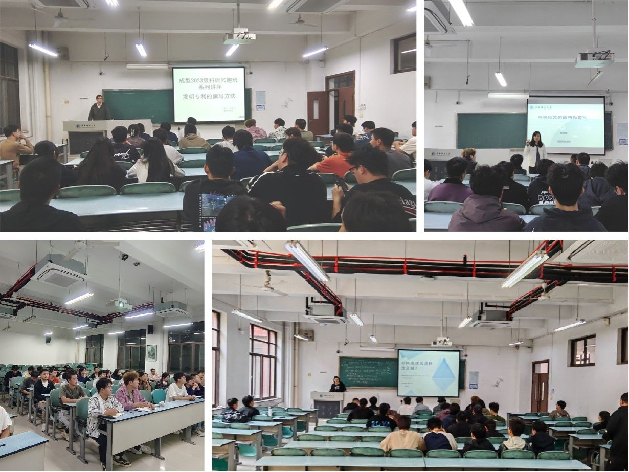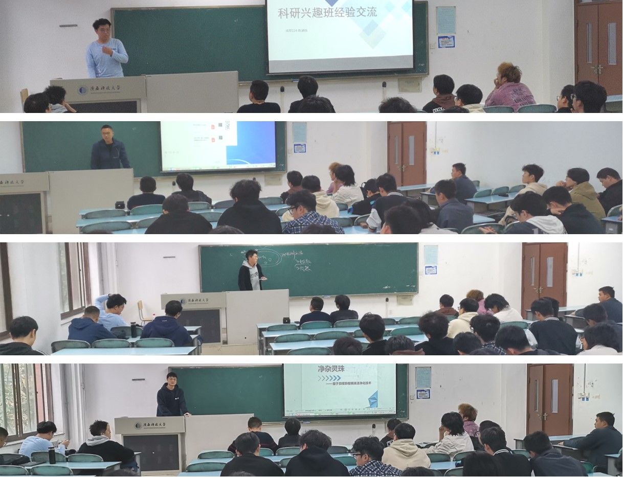 在前期充分論證講座主題及內(nèi)容基礎(chǔ)上,專業(yè)科研導(dǎo)師趙雪妮教授、王朋義副教授、楊光副教授、李譽(yù)之博士等四名教師分別就科研論文結(jié)構(gòu)與寫作方法、發(fā)明專利撰寫與申請(qǐng)流程、中英文獻(xiàn)查詢方法、中英文獻(xiàn)高效閱讀技巧等方面開展了系列講座,旨在提高科研興趣班同學(xué)的基本科研素養(yǎng),提升論文、專利等寫作方法和技巧。此外,還邀請(qǐng)了2022級(jí)本科生科研興趣班在競賽、專利等方面表現(xiàn)突出的陳涵鑠、梁建偉、王舒磊和陸星宇等四位同學(xué)進(jìn)行經(jīng)驗(yàn)分享與交流。