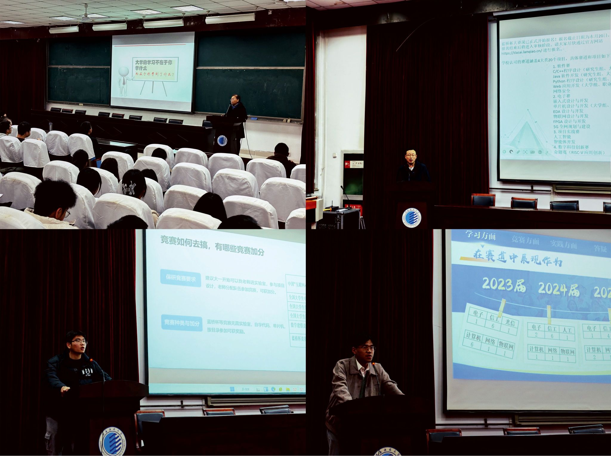 一方面,聘任學(xué)院班子成員、系主任、專業(yè)負(fù)責(zé)人、青年博士等21人組成新生班級學(xué)業(yè)導(dǎo)師團(tuán),將專任教師優(yōu)勢與學(xué)生思想政治教育工作有機(jī)結(jié)合,合理把控工作側(cè)重并形成有效互補(bǔ),為新生深度解讀各專業(yè)的前沿動態(tài)、發(fā)展前景與就業(yè)方向,筑牢專業(yè)認(rèn)知基礎(chǔ),堅定專業(yè)選擇決心,助力后續(xù)專業(yè)學(xué)習(xí)。同時,舉辦“電路焊接技術(shù)培訓(xùn)”“學(xué)科競賽答疑記者會”等實操性活動,培養(yǎng)新生科技創(chuàng)新與動手實踐能力。