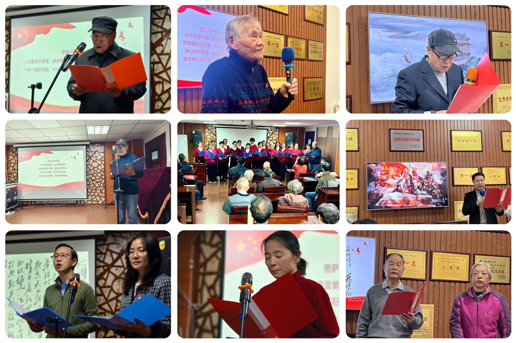 朗誦會現(xiàn)場,離退休黨員們齊聚一堂,以飽滿的熱情、激昂的語調(diào)朗誦了一首首經(jīng)典的毛澤東詩詞。《采桑子·重陽》《七律·長征》《憶秦娥·婁山關(guān)》等作品被深情演繹,時(shí)而舒緩,時(shí)而高亢。他們用鏗鏘有力的聲音重溫紅色經(jīng)典,在詩詞中感受偉人的革命情懷與豪情壯志。有的老同志雖年事已高,但依然精神矍鑠,朗誦起來聲情并茂,贏得了在場觀眾的陣陣喝彩。在校外居住的老同志還以集體錄制朗誦視頻的形式參與到活動中。重溫毛澤東的詩詞,是黨史記憶、軍史記憶、國史記憶,激蕩著老同志曾經(jīng)的青春記憶和不滅的理想之火。