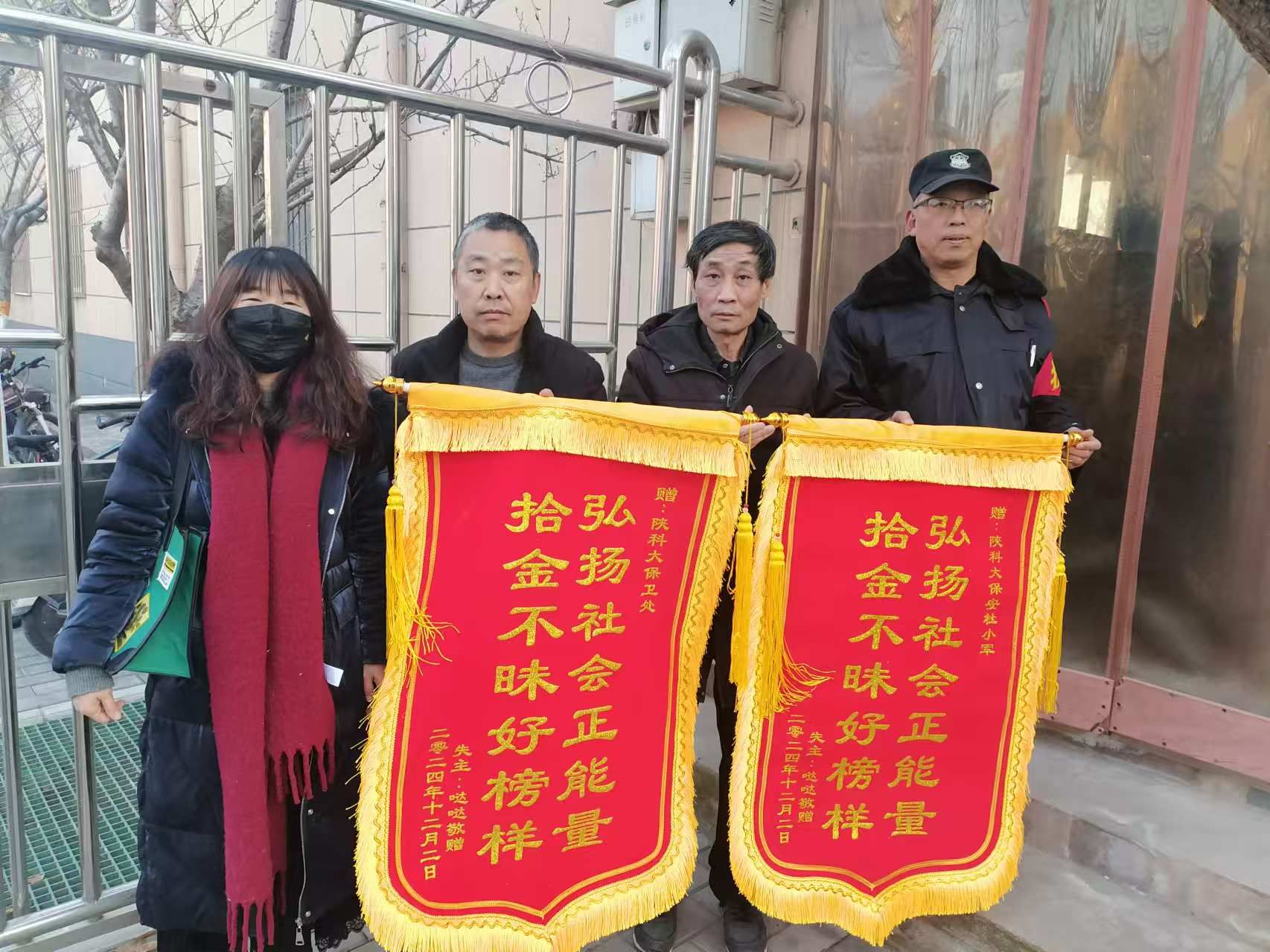 12月17日,一位來自陜科大社區(qū)的居民到咸陽校區(qū)管委會保衛(wèi)部,將一面寫有“弘揚社會正能量 拾金不昧好榜樣”大紅錦旗鄭重地送到保安杜小軍和保衛(wèi)部工作人員的手上。事發(fā)當(dāng)天,小區(qū)保安杜小軍執(zhí)勤時在路邊發(fā)現(xiàn)一個鼓鼓的錢包,他第一時間上報管理人員并在現(xiàn)場守候,待同事到場后一起打開錢包,通過其中的證件多方找到失主的聯(lián)系方式,及時通知焦急的失主取回錢包。事后,這位居民十分感動,隨即送來錦旗表達謝意。平日里小區(qū)保安幫助居民找還失物、扶助病弱、提醒鎖車等日常暖心事時有發(fā)生,為居民生活增添了一縷縷友善和暢、溫馨和諧的底色。