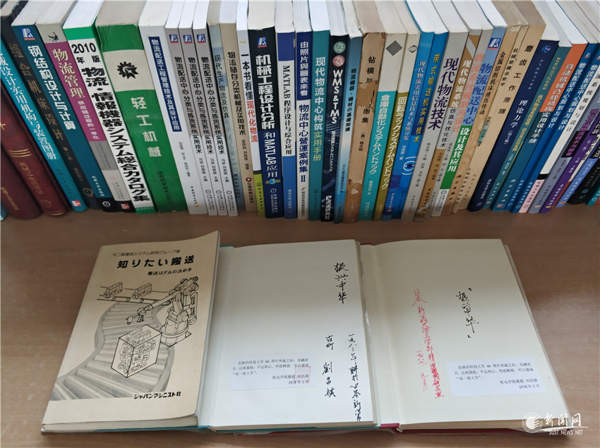 在幾本日文書籍的扉頁上,還可以看到劉老師工整書寫的“振興中華”四個字,劉老師說:“這是當年在日本留學時含淚寫下的,上世紀八十年代國家經濟困難,我們這一批留學生深知自己責任重大,省吃儉用,把省下來的錢拿去買書,刻苦學習,就是為了報效祖國,振興中華?!边@四個字,正體現(xiàn)了老一代輕院人的愛國情懷和赤子之心。作為機電工程學院工業(yè)工程與物流專業(yè)的創(chuàng)始人之一,劉昌祺教授十分關心專業(yè)的發(fā)展,并積極幫助青年教師發(fā)展,退休后仍舊筆耕不輟,先后出版專著17本,為國家物流裝備技術的發(fā)展貢獻了自己的力量。