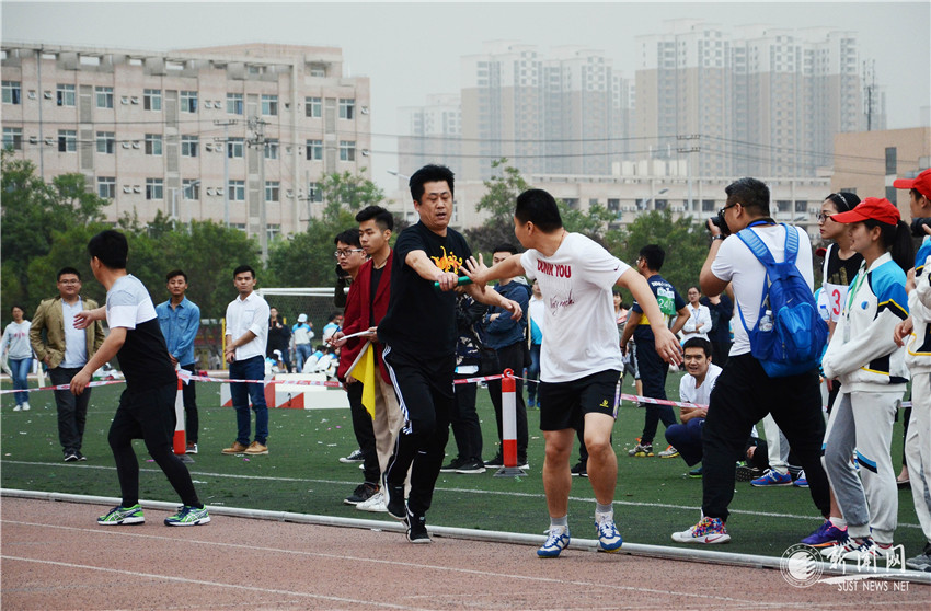 11:20,青年教工組4×400米接力賽開始。發(fā)令槍一響,選手們就爆發(fā)出無(wú)比的激情和活力,接力棒的交換沒(méi)有一次失誤,比賽扣人心弦。設(shè)藝學(xué)院的教師兩次摔倒,兩次爬起,詮釋了堅(jiān)持不放棄的運(yùn)動(dòng)精神。