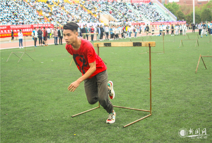 大學(xué)生組男女障礙接力賽也同時(shí)進(jìn)行著。男女隊(duì)員分站兩邊,進(jìn)行50米的來回穿越障礙跑??简?yàn)了隊(duì)員們的身體靈活度及默契配合。經(jīng)過激烈的比拼,經(jīng)管學(xué)院,輕工學(xué)院,鎬京學(xué)院取得前三。