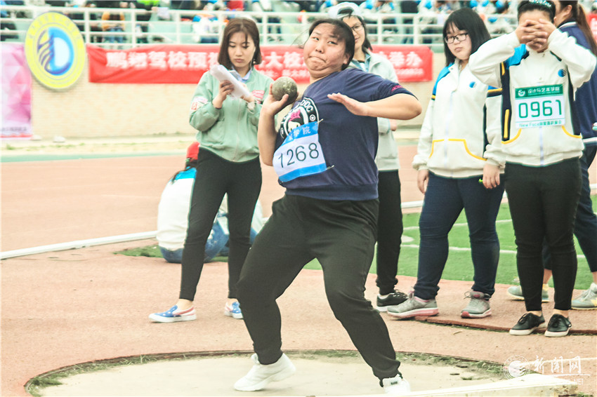 另一邊,大學(xué)生女子組鉛球比賽也正熱火朝天舉行著。細(xì)雨綿綿,選手們拋擲鉛球的手卻絕不綿軟。鉛球高高飛起,落定在碧綠的賽場,掌聲與歡呼聲不絕于耳。最終,鎬京學(xué)院張選榮獲得第一。