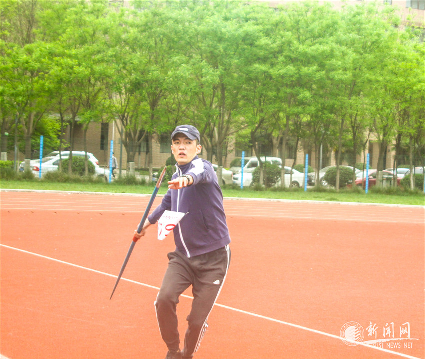 16:00,大學(xué)生組男子標(biāo)槍決賽在風(fēng)雨操場舉行,蒙蒙細(xì)雨中,每名選手都用盡全力投擲出手中的標(biāo)槍。盡管觀眾不多,但他們?nèi)允菫榱藢W(xué)院的榮譽(yù)而拼搏。