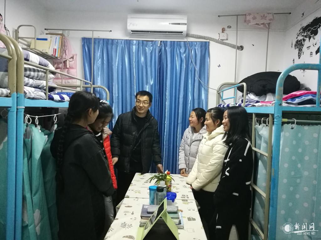 任歡老師(中)和學(xué)生一起張貼宿舍標(biāo)識