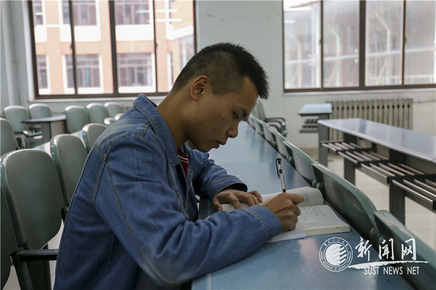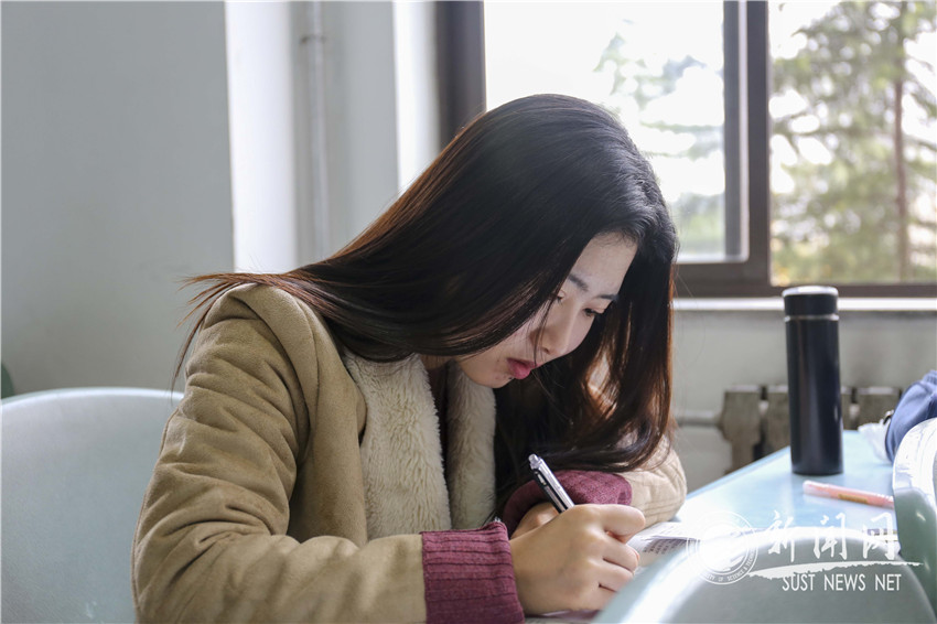 初冬周末的早晨,當(dāng)大多數(shù)學(xué)生在溫暖的被窩里睡覺的時(shí)候,“學(xué)霸”們早早就來到教學(xué)樓自習(xí),楊金燦同學(xué)就是其中一位。
