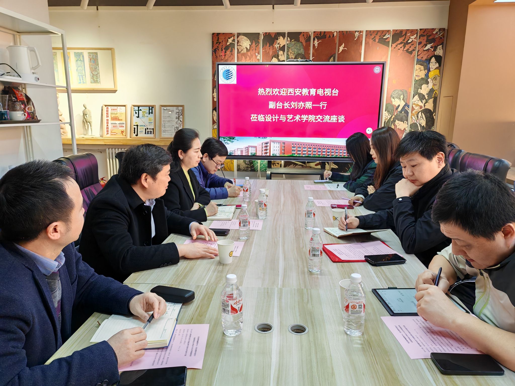 3月19日下午,西安教育電視臺副臺長劉亦照一行應(yīng)邀來到我校設(shè)計(jì)與藝術(shù)學(xué)院,進(jìn)行實(shí)習(xí)、就業(yè)座談與交流,學(xué)院黨委書記劉和林、黨委副書記田少寧、副院長吉平、播音教研室、編導(dǎo)教研室相關(guān)教師參與了此次座談會(huì),本次座談會(huì)由吉平主持。