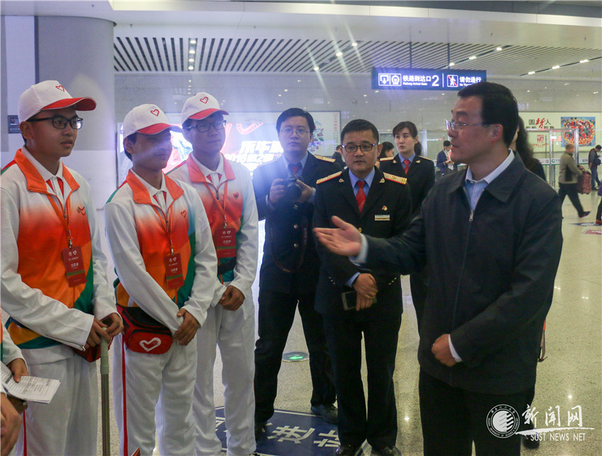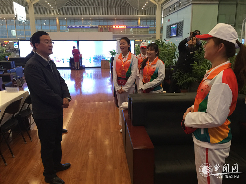在第十一屆中國藝術(shù)節(jié)即將開幕之際,共青團(tuán)陜西省委書記、第十一屆中國藝術(shù)節(jié)陜西省工作指揮部志愿者工作部部長段小龍,陜西廣播電視臺副臺長、黨委副書記安平,共青團(tuán)陜西省委志愿者工作部副部長胡曉彤等一行于10月13日下午來到西安咸陽國際機(jī)場、西安北客站,慰問我校正在此地進(jìn)行現(xiàn)場服務(wù)的127名大學(xué)生志愿者。