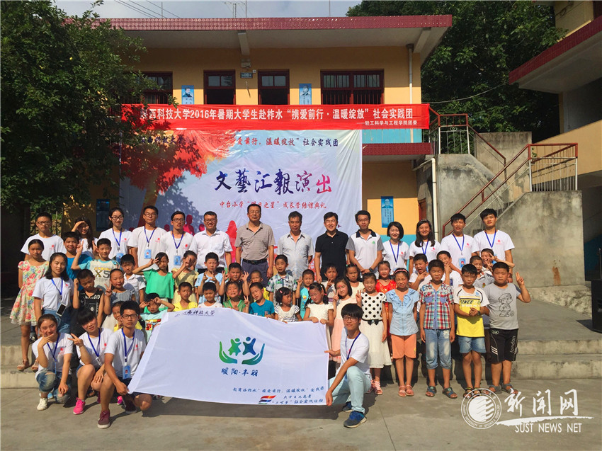 陜西科技大學(xué)赴商洛柞水“攜愛前行,溫暖綻放”大學(xué)生社會實踐隊,由來自輕工科學(xué)與工程學(xué)院、材料科學(xué)與工程學(xué)院、機(jī)電工程學(xué)院、電氣與信息工程學(xué)院等17名師生組成。實踐隊于7月15日抵達(dá)商洛市柞水縣杏坪鎮(zhèn)中臺村中臺小學(xué)開展為期七天的關(guān)愛留守兒童活動。實踐活動旨在通過走進(jìn)當(dāng)?shù)亓羰貎和{(diào)查和研究留守兒童群體在身心成長方面存在的問題,并通過陪伴輔導(dǎo)等途徑,對留守兒童進(jìn)行切實的關(guān)愛幫扶。短短七天,同學(xué)們與孩子們建立了溫暖融洽的友誼,走進(jìn)了留守兒童的內(nèi)心,感動孩子們的同時,也感動著自己,感觸著社會,深刻領(lǐng)悟到青年要關(guān)注社會、認(rèn)清并主動承擔(dān)社會使命和責(zé)任,也通過社會實踐更加明確了成才目標(biāo),決心積極參加各項實踐活動提高自身綜合素質(zhì),筑夢追夢,共同努力匯聚偉大“中國夢”。
