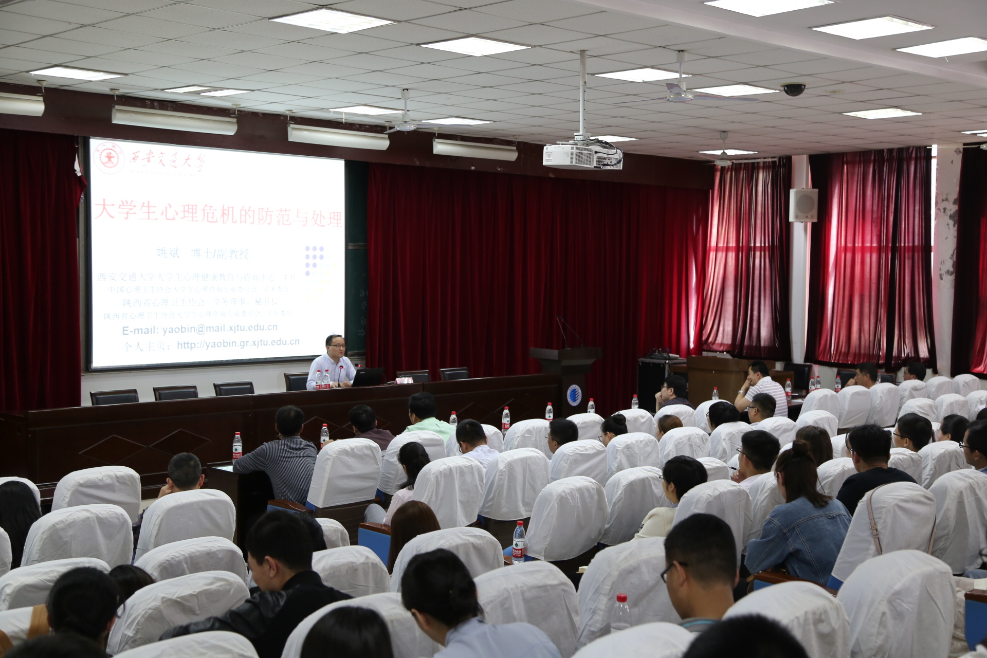 4月19日下午,中國心理衛(wèi)生協(xié)會(huì)理事、西安交通大學(xué)大學(xué)生心理健康教育與咨詢中心主任姚斌博士應(yīng)邀在3號(hào)教學(xué)樓101報(bào)告廳作題為“大學(xué)生心理危機(jī)的預(yù)防與處理”的專題報(bào)告。學(xué)工系統(tǒng)全體工作人員聆聽了報(bào)告。報(bào)告由學(xué)工部副部長(zhǎng)李萌主持。
