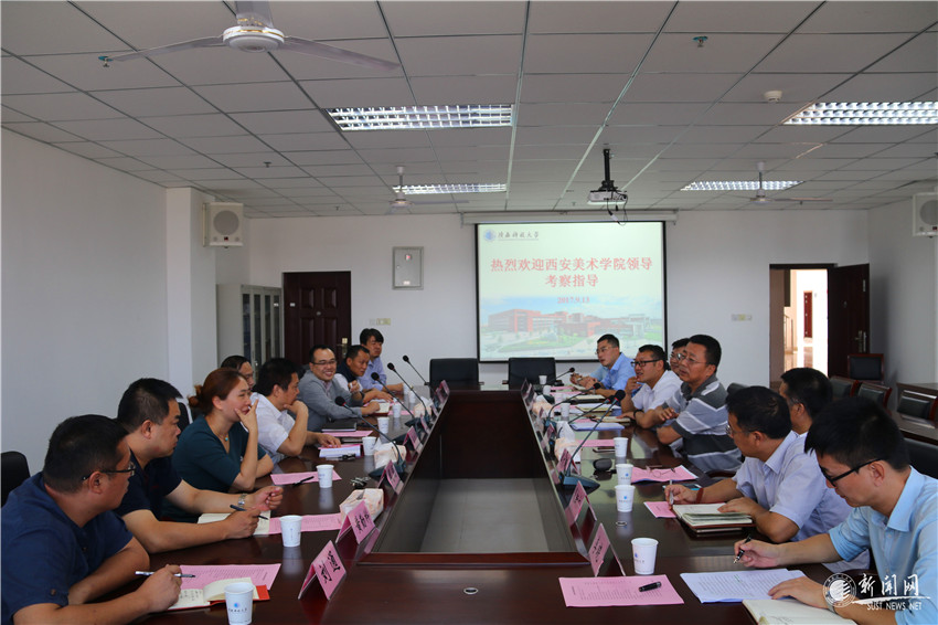 西安美術(shù)學(xué)院副院長李四軍及總務(wù)處、招生就業(yè)處、學(xué)工部、團(tuán)委等部門主要負(fù)責(zé)人一行8人9月13日上午來我??疾旖涣骱笄谏鐣?huì)化改革、學(xué)生管理、招生等工作。校黨委副書記溫鋒、學(xué)工部、團(tuán)委、后勤服務(wù)集團(tuán)、招生辦相關(guān)負(fù)責(zé)人參加交流座談,會(huì)議由學(xué)工部部長楊建主持。