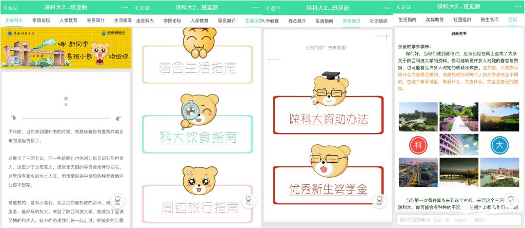率先嘗試?yán)靡装嗥脚_(tái)將新生入學(xué)教育、管理和服務(wù)工作前置。7月29日,我校2017級(jí)易班迎新系統(tǒng)正式上線,系統(tǒng)涵蓋9大迎新專欄、7大入學(xué)教育主題、50余個(gè)校園生活功能頁面、100多張“畫冊(cè)”式校園圖示和3D全景空間校園展示、12個(gè)院(部)新生輔導(dǎo)員公共號(hào)等內(nèi)容,從食、住、行、學(xué)等方面對(duì)新生進(jìn)行了立體形象、圖文并茂的全方位宣傳推介和教育。易班迎新系統(tǒng)的上線既給新生營造了美麗校園、美好大學(xué)時(shí)光的“初印象”,又徹底顛覆了新生來校報(bào)到、注冊(cè)繳費(fèi)后再聯(lián)系輔導(dǎo)員、熟悉校園環(huán)境的傳統(tǒng)迎新服務(wù)模式。系統(tǒng)開通僅三天, 2017級(jí)的3014名新生便已順利完成認(rèn)證報(bào)到,在共享全國各高校教育信息化成果的同時(shí),開始充分體驗(yàn)融生活服務(wù)、文化娛樂、教育教學(xué)、思想引領(lǐng)為一體的學(xué)校易班平臺(tái)的一站式服務(wù)。