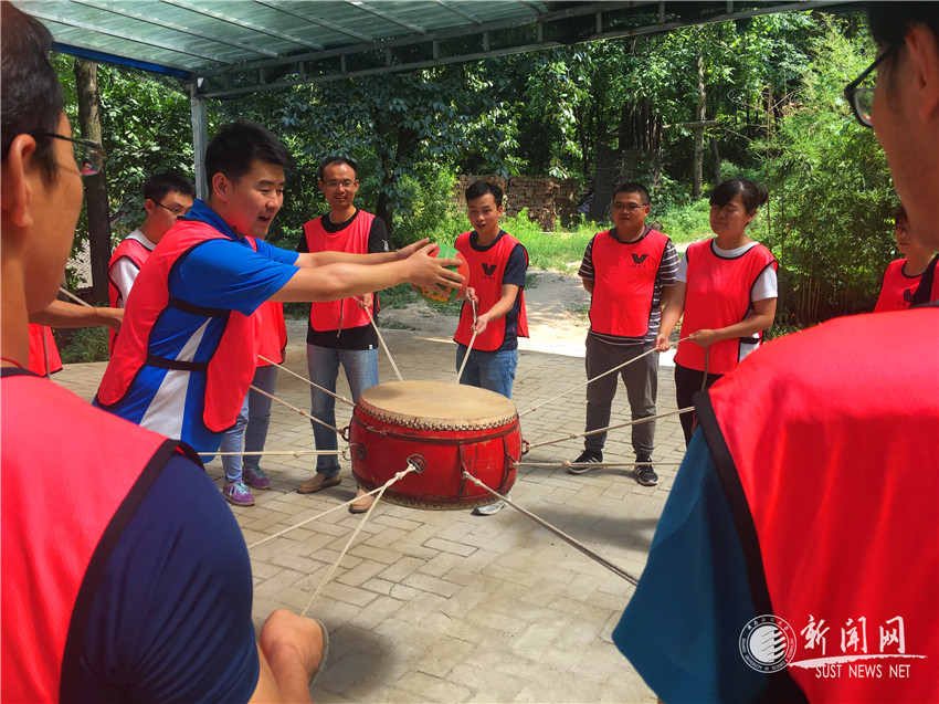 此次拓展訓(xùn)練地點位于秦嶺北麓太平河畔,青年教師們乘車到達山腳的出發(fā)點,首先進行分團隊、選隊長、定隊名等一系列破冰之旅的活動,大家的情緒不斷高漲,團隊合作和競爭意識開始悄然加強。短暫的調(diào)整之后,六公里徒步登山項目開始了,在近四十度的高溫下,對每一位參加拓展訓(xùn)練的教師都是艱巨的挑戰(zhàn),然而大家在相互鼓勵和幫助中,無一人掉隊或放棄,每一次都全員順利登頂。在山頂?shù)耐卣够兀叹氁浴皽贤?、信任、合作”為主題,以團隊精神為導(dǎo)引,以心理挑戰(zhàn)為重點,帶領(lǐng)大家進行了集體大鍋飯、齊眉棍、極速60秒、團隊堡壘、鼓舞飛揚、穿越電網(wǎng)等一系列精心設(shè)計的項目,全體青年教師團結(jié)一致、齊心協(xié)力,全身心地投入到每項活動中,圓滿完成了各項拓展任務(wù)。