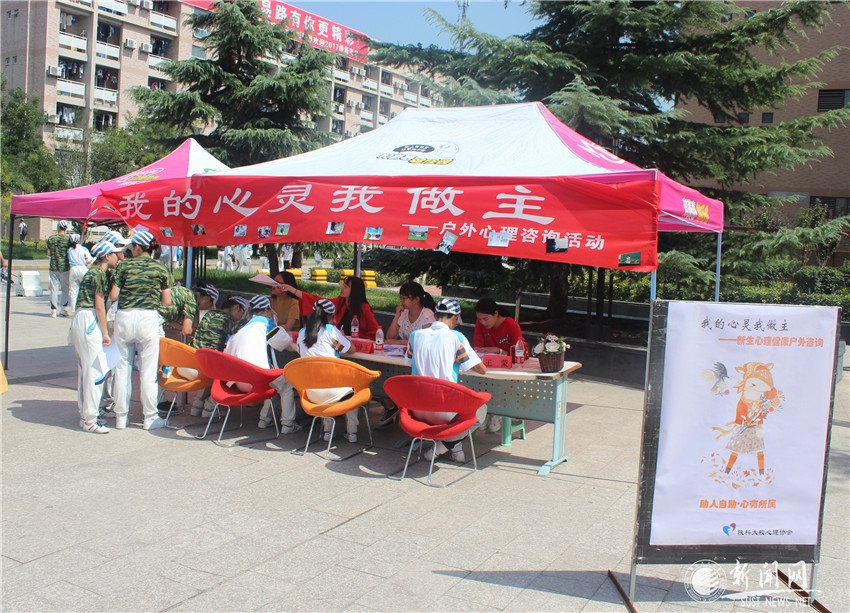 ——樹立意識,開展新生心理健康戶外咨詢。為了提高學(xué)生心理自助能力,心理中心在新生入校一周后就開展了戶外心理宣傳活動?;顒游舜笈律e極參與,咨詢心理問題、學(xué)習(xí)心理知識、分析自我心境、了解心理中心等與自身息息相關(guān)的問題。走出咨詢室,走進(jìn)學(xué)生,此次戶外心理宣傳活動幫助新生解開心理困惑,學(xué)習(xí)應(yīng)對方法,樹立了積極陽光的心理健康意識。