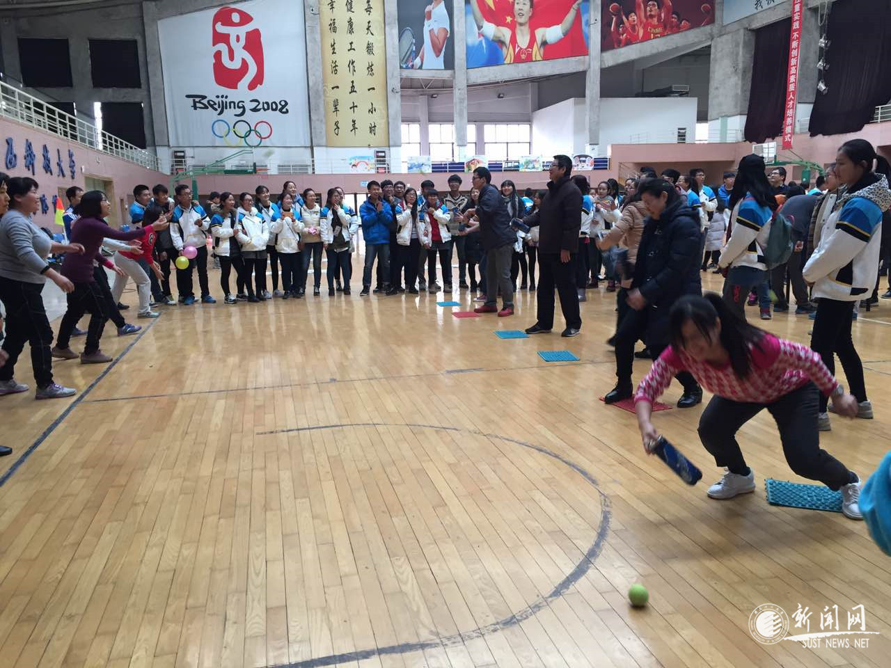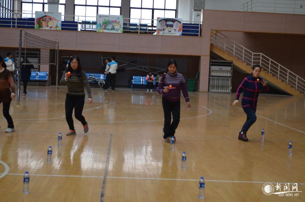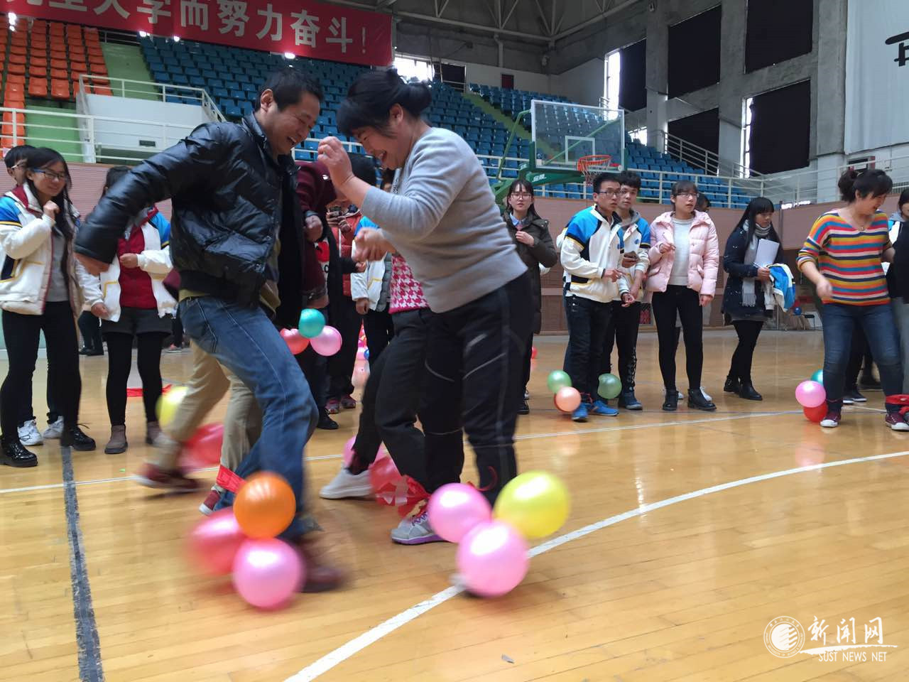 為進一步豐富食品學院教職工文娛活動,緩解工作壓力,提高教職工參加體育鍛煉的積極性,增強體質(zhì),營造積極向上、和諧團結(jié)的良好氛圍,食品學院工會于2016年12月29日在校文體館舉辦教職工趣味運動會?;顒臃譃榀偪衿古仪颉扇巳悴葰馇?、默契接球、持球跑四個個人項目及折報紙、指壓板障礙賽、終極撕名牌大戰(zhàn)三個團體項目。