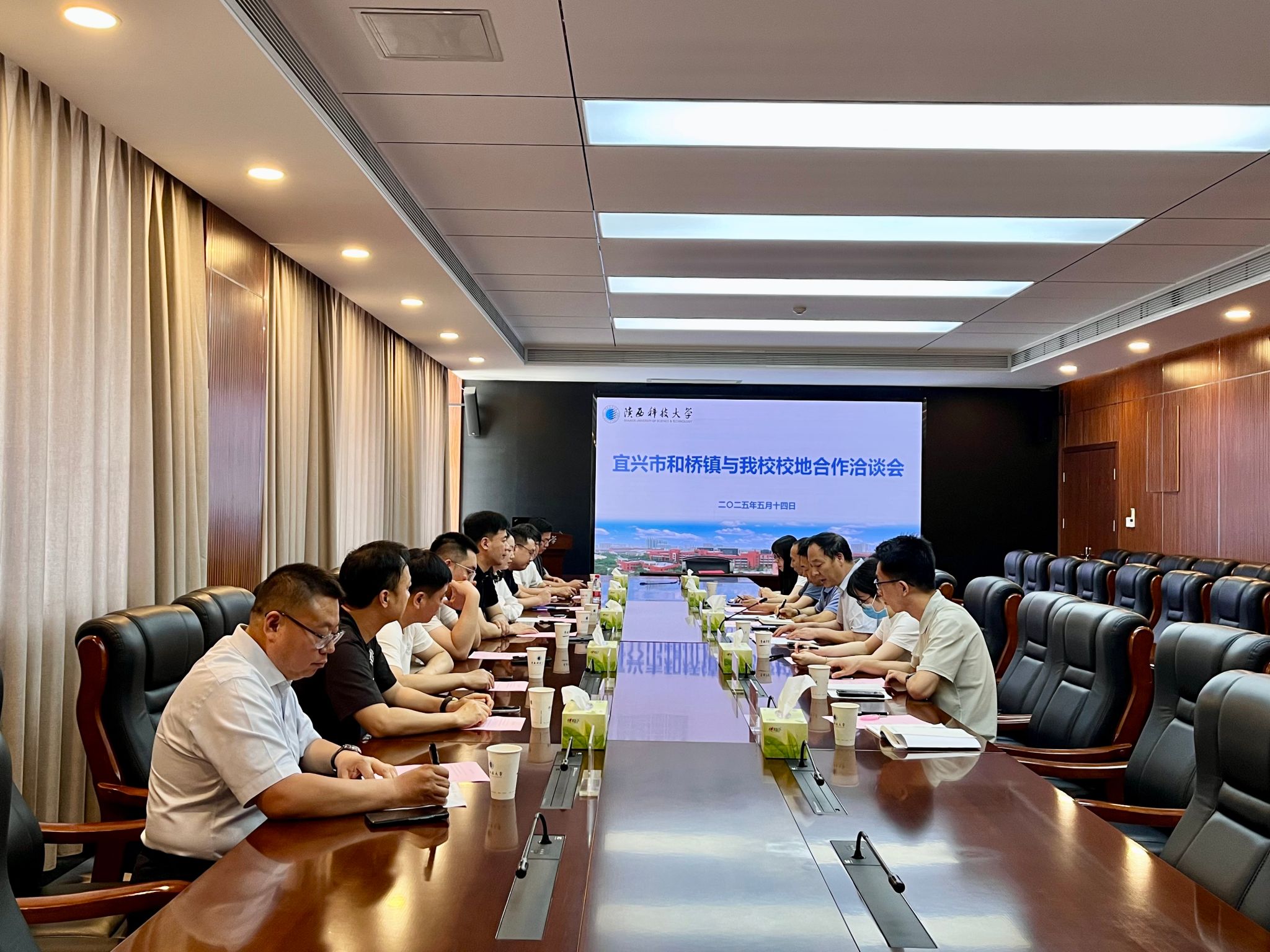 為貫徹落實學(xué)校第三次黨代會精神,深入實施服務(wù)社會創(chuàng)優(yōu)行動,促進產(chǎn)學(xué)研開放合作。5月14日下午,宜興市和橋鎮(zhèn)黨委書記田軍一行9人來校就產(chǎn)學(xué)研合作進行交流??萍继幪庨L朱建鋒、輕工科學(xué)與工程學(xué)院相關(guān)專家教授參加座談,會議由前沿科學(xué)與技術(shù)轉(zhuǎn)移研究院副院長張鵬偉主持。