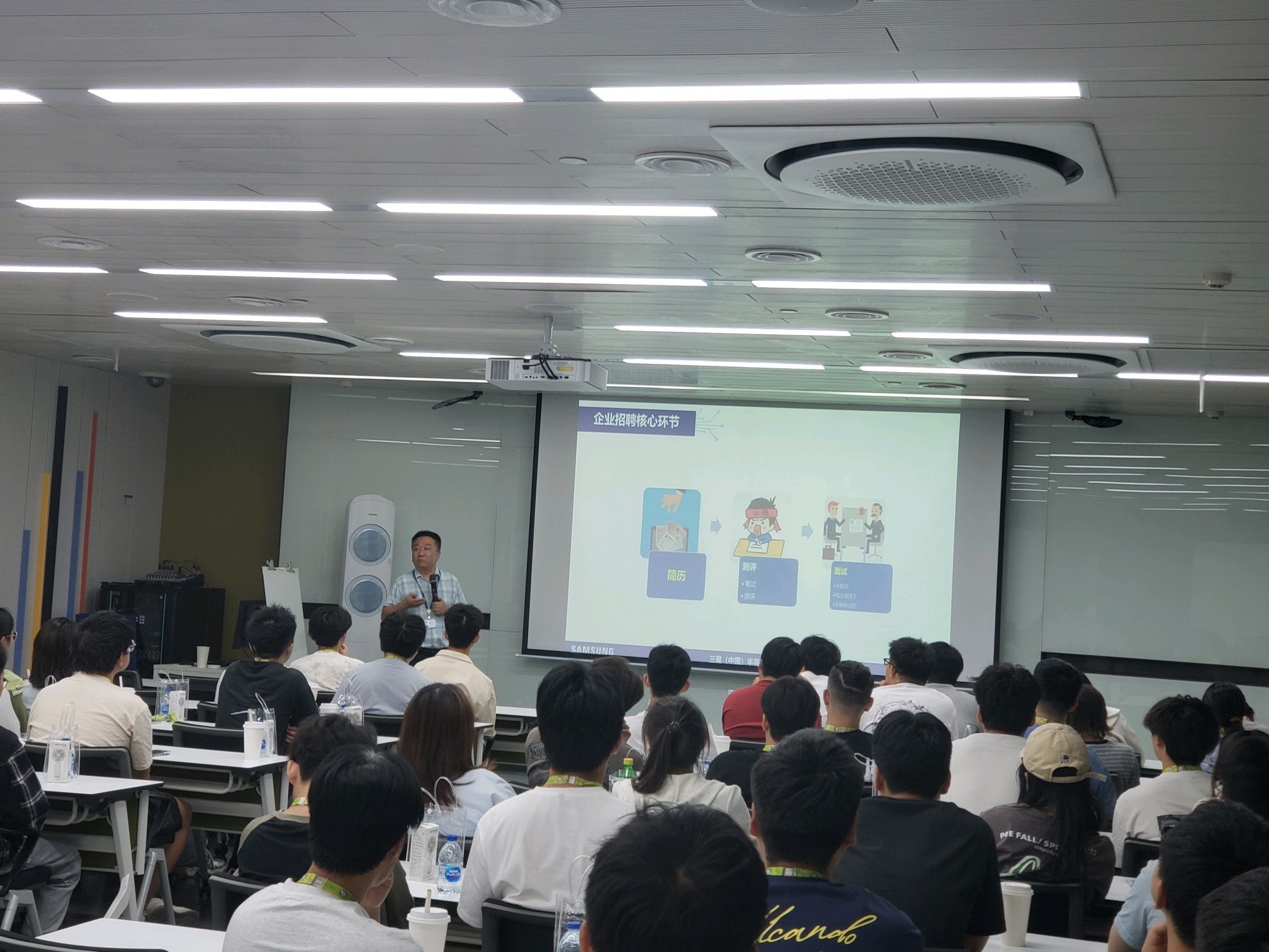 在三星企業(yè)文化館——芯空間,師生們詳細(xì)了解半導(dǎo)體的發(fā)展歷史、制造工藝和社會應(yīng)用;在全自動化智能生產(chǎn)車間,師生們切身體會國際化高科技制造企業(yè)的職場環(huán)境和創(chuàng)新氛圍;在文化活動場館與員工培訓(xùn)中心,師生們現(xiàn)場感受公司企業(yè)文化和人文關(guān)懷。參觀學(xué)習(xí)過程中,企業(yè)技術(shù)專家圍繞半導(dǎo)體行業(yè)發(fā)展趨勢與崗位需求進(jìn)行了專題分享,幫助學(xué)生拓寬行業(yè)視野、厘清職業(yè)方向。人力資源部門負(fù)責(zé)人以詳實(shí)案例介紹了簡歷制作技巧與面試應(yīng)對策略,為學(xué)生即將面臨的求職過程提供了實(shí)用指導(dǎo)。