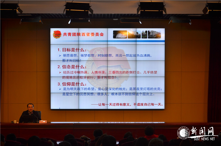 當(dāng)晚19時30分,共青團陜西省委副書記、陜西省青年聯(lián)合會主席徐永勝作為本屆培訓(xùn)班的首位主講人,在圖書館教師發(fā)展中心,為到場的近600名共青團干部、學(xué)生骨干作了《堅定理想信念,練就過硬本領(lǐng),做一個堅定的青年馬克思主義者》的主題報告。