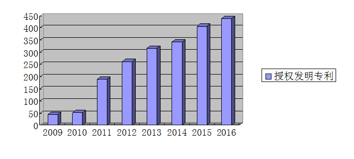 圖2 2009-2016期間我校授權(quán)專利增長趨勢