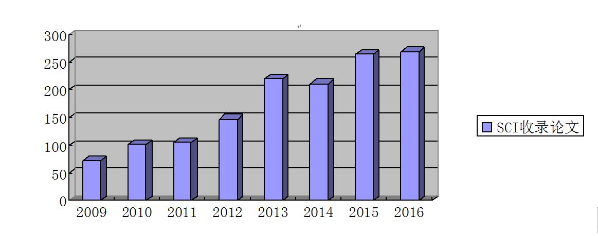 高水平SCI收錄論文總量達到新水平。2009-2016期間,共發(fā)表核心期刊論文5782篇,被國際三大檢索收錄論文3477篇,其中包括SCI收錄論文1391篇、EI收錄論文1882篇、ISTP收錄論文204篇。2016年,我校教師在nature子刊(scientific reports)發(fā)表高水平論文12篇,SCI收錄論文269篇(其中包括一區(qū)、二區(qū)論文146篇)、EI論文80篇,學術(shù)論文質(zhì)量創(chuàng)歷年最好水平。