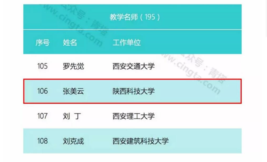 陜科大張美云教授入選第三批國(guó)家“萬(wàn)人計(jì)劃”人員名單其領(lǐng)銜的團(tuán)隊(duì)入選首批“全國(guó)高校黃大年式教師團(tuán)隊(duì)”