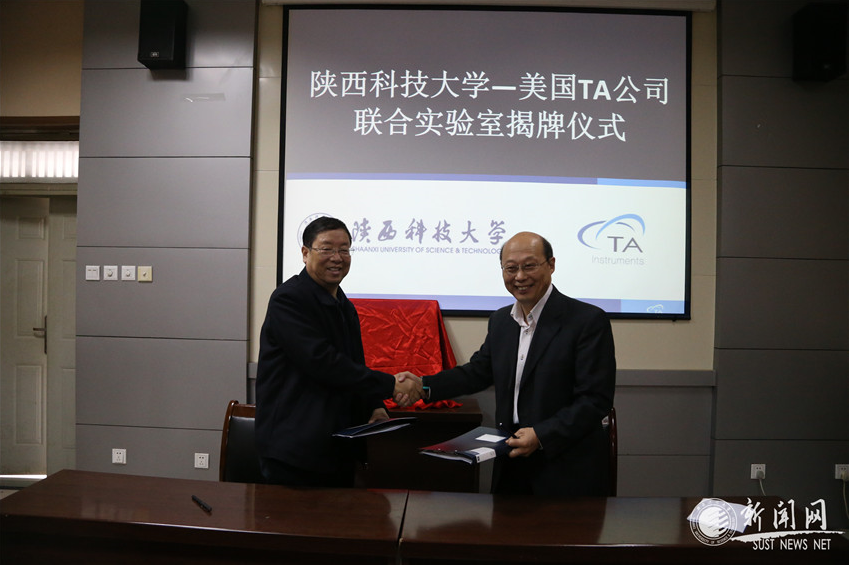 “陜西科技大學—美國TA儀器聯(lián)合實驗室”揭牌儀式于10月20日上午在我校舉行。我校此次與TA儀器強強聯(lián)手成立聯(lián)合實驗室,共同開展面向熱分析、流變技術(shù)及其與國內(nèi)材料領(lǐng)域相關(guān)應用結(jié)合的工作。