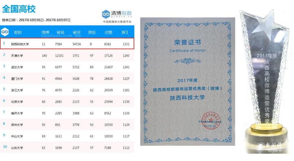 12月22日,由省委高教工委、省教育廳主辦,西安歐亞學(xué)院、陜西省教育新媒體研究院承辦的2017年陜西教育新媒體年會在西安歐亞學(xué)院召開。會議頒發(fā)了2017年度陜西教育新媒體運營獎項,我校獲2017陜西高校微博運營優(yōu)秀獎。