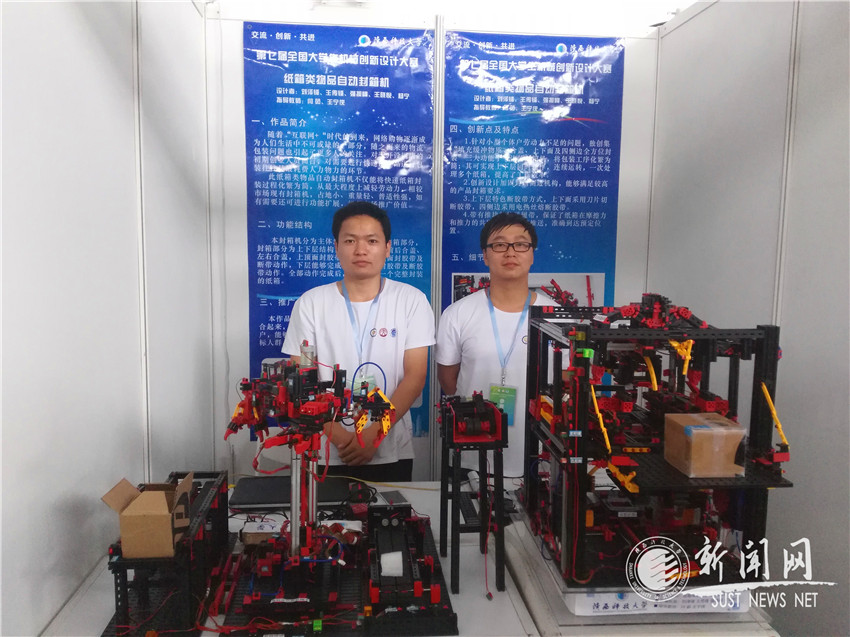 7月26日至29日,在由全國大學(xué)生機械創(chuàng)新設(shè)計大賽組委會和教育部高等學(xué)校機械基礎(chǔ)課程教學(xué)指導(dǎo)委員會主辦、山東交通學(xué)院承辦的第七屆全國大學(xué)生機械創(chuàng)新設(shè)計大賽決賽上,我?;埕~作品“紙箱類物品自動封箱機”榮獲一等獎,這是我校連續(xù)第三次取得該項賽事全國一等獎。