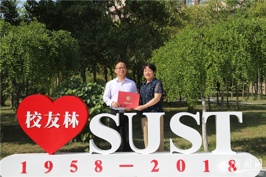 經(jīng)管學(xué)院黨委書記王淑霞代表學(xué)院接受捐贈,并向校友代表郭長祿頒發(fā)捐贈證書,感謝校友在畢業(yè)離校之際對母校送上的深情祝福。