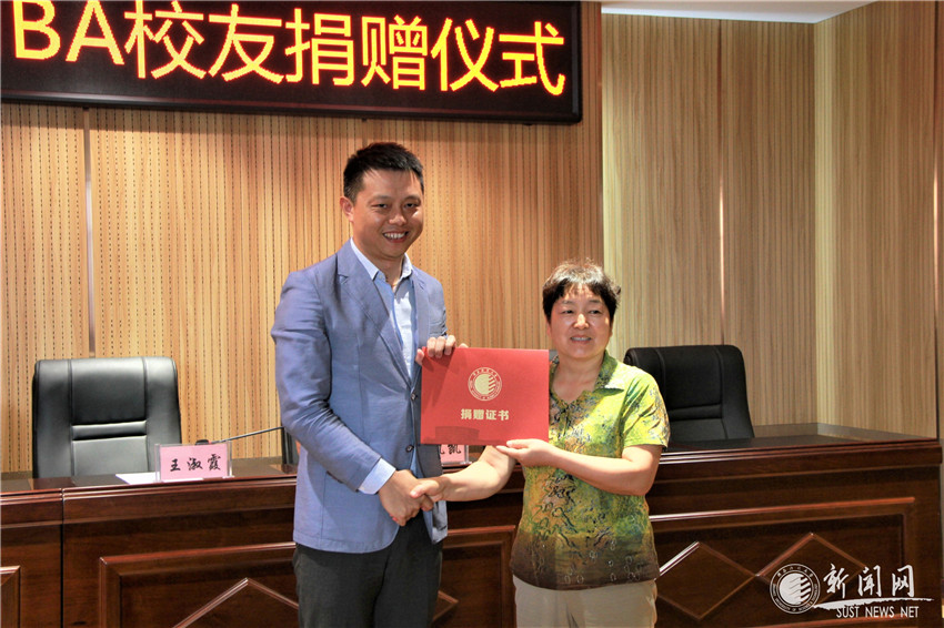 捐贈儀式上,馬廣奇對2017級MBA全體同學(xué)表示感謝。他表示,2017級MBA同學(xué)雖未畢業(yè),卻對母校心懷感恩,捐贈表達(dá)的是校友們對母校的摯愛。他希望全體同學(xué)在自己的工作崗位上繼續(xù)奮斗,發(fā)揚陜科大“三創(chuàng)兩遷”精神,不忘初心,與母校共同成長。